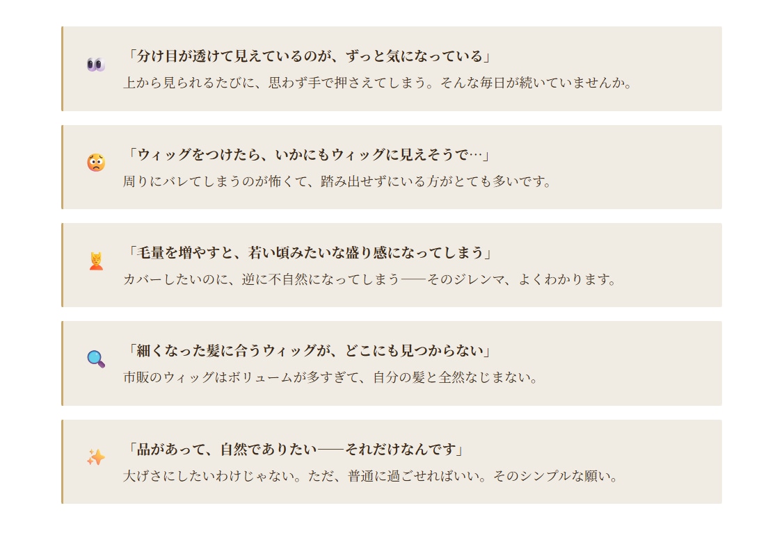 サロンでたくさんのお客様からご相談をいただくなかで、同じような悩みを繰り返し耳にしてきました。