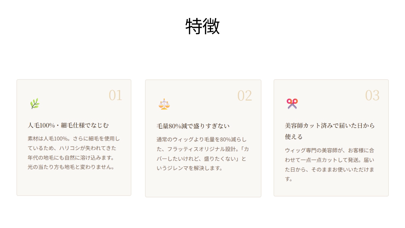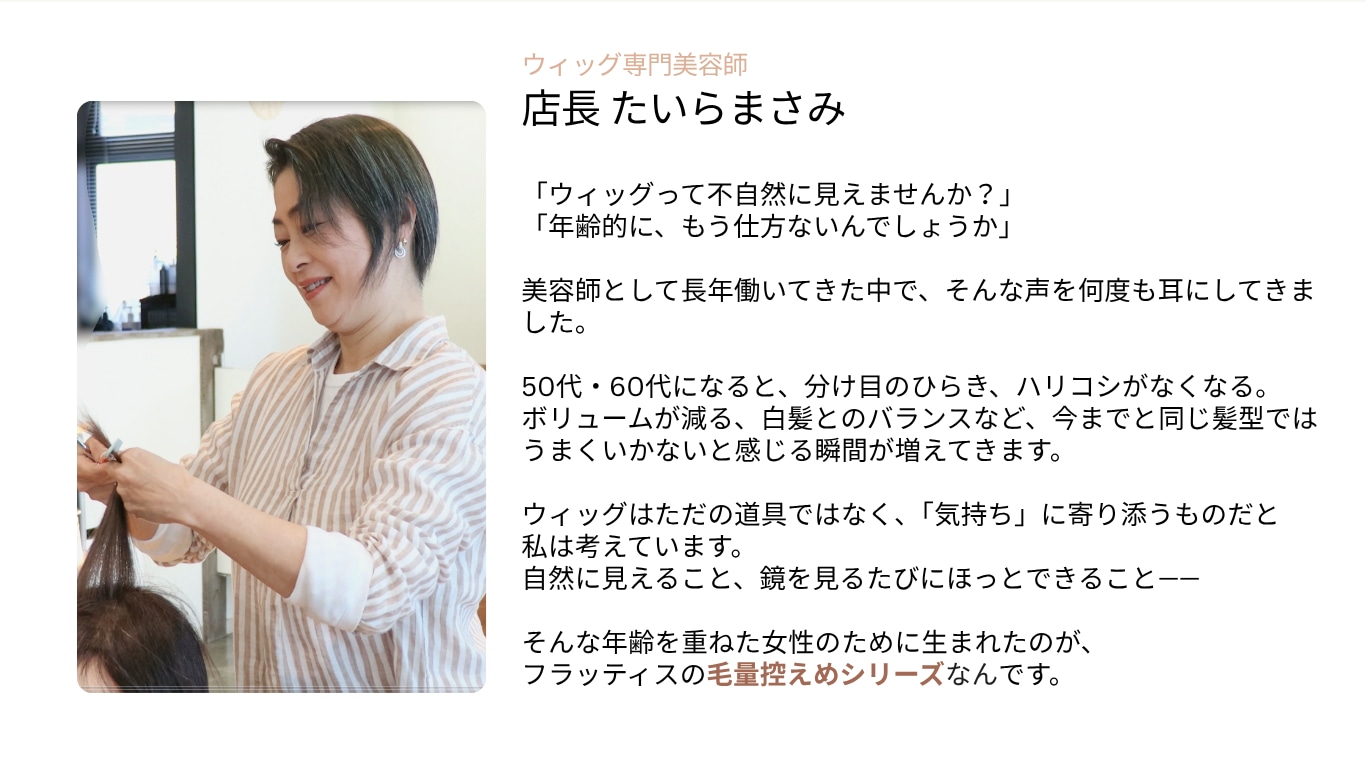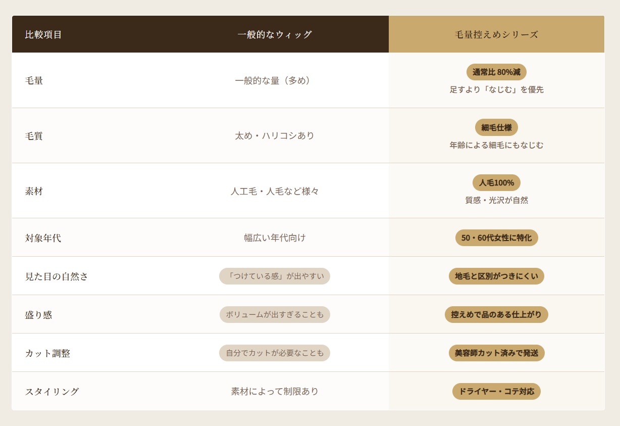 フラッティスの毛量控えめシリーズは、通常のウィッグとは根本的に発想が異なります。