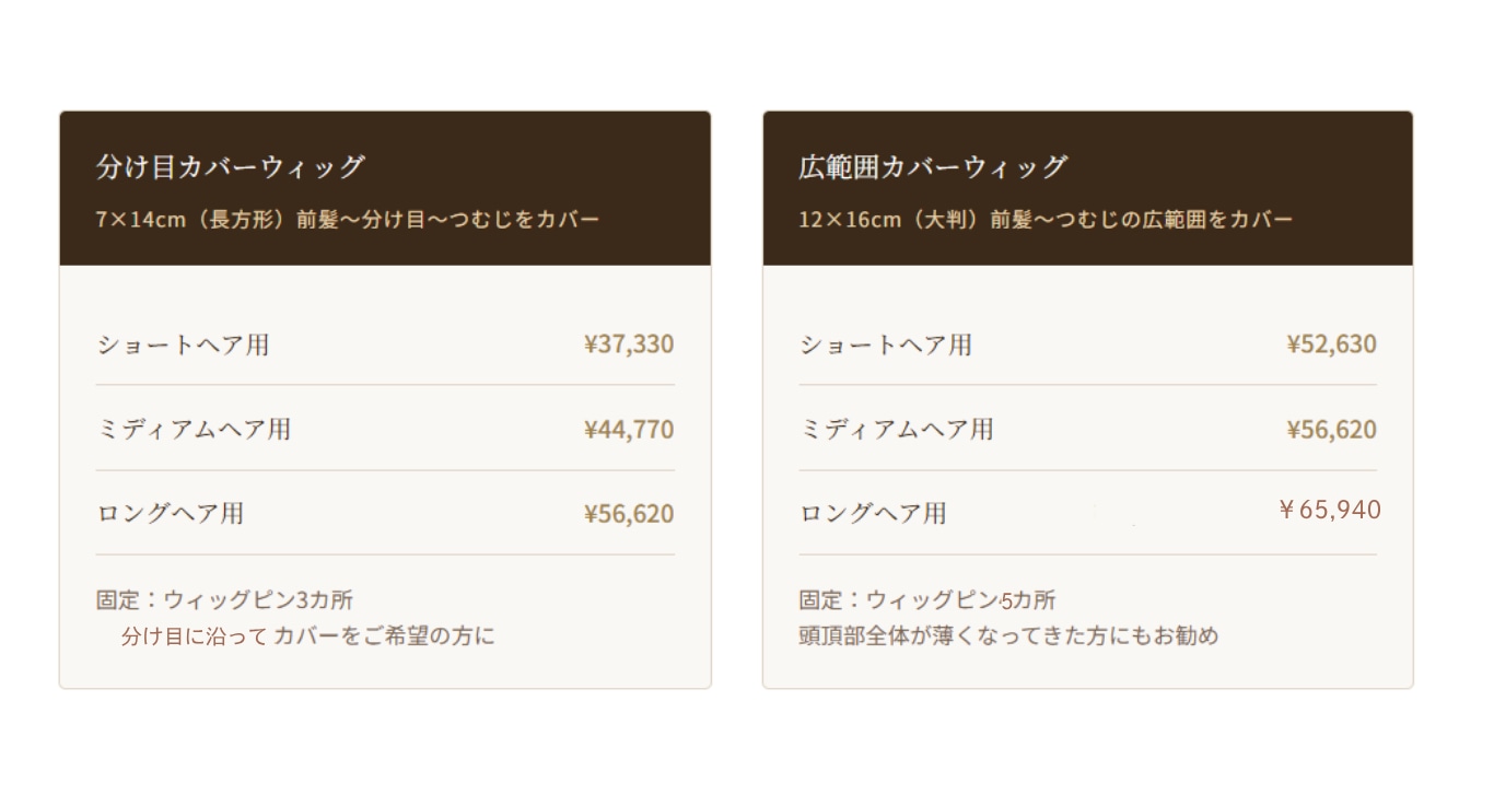 - 頭頂部全体の薄さや広い範囲が気になる方は、広範囲カバーウィッグがおすすめです。