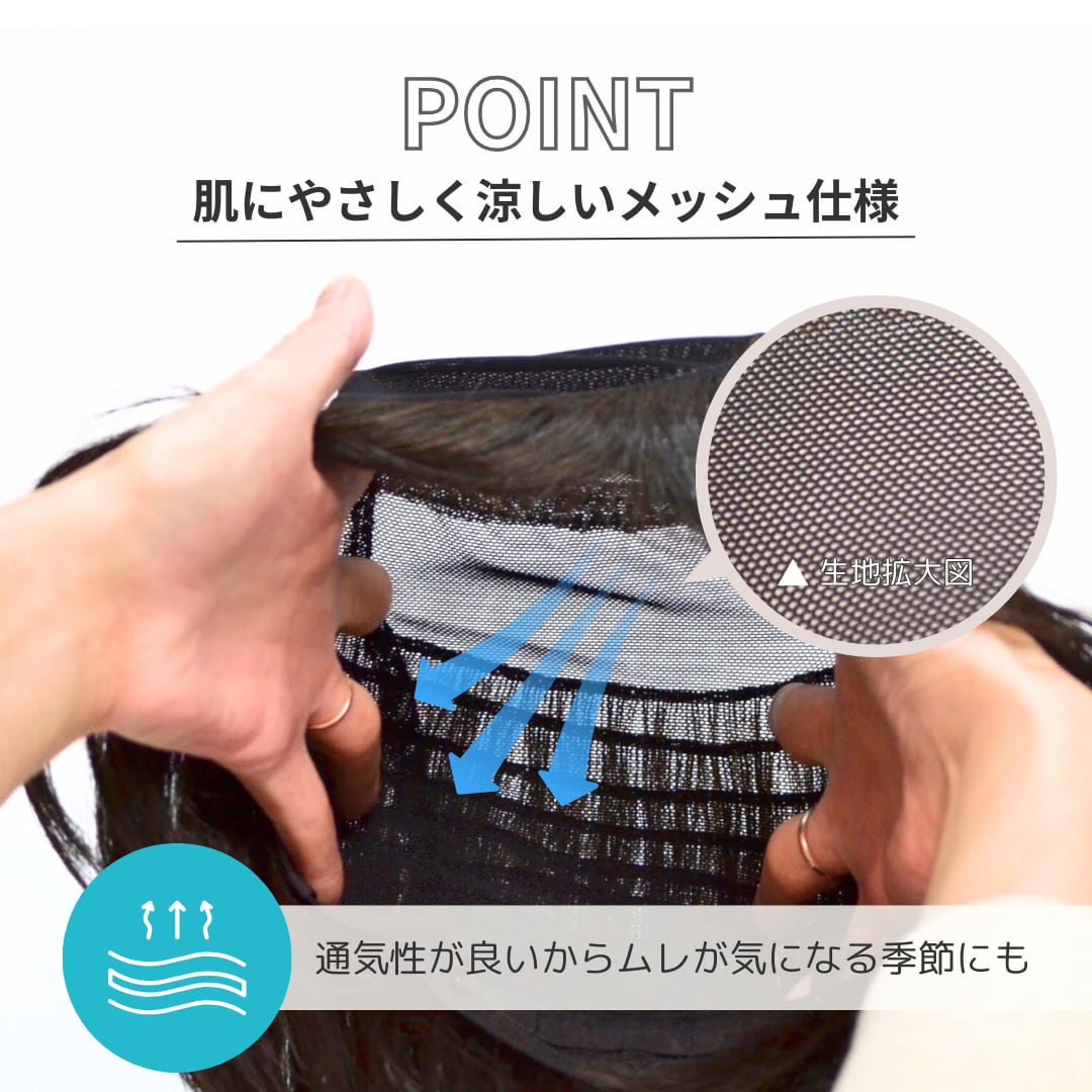 A. ウィッグの内側をネット状態にしてあり、帽子の下にセットするだけでOKです。