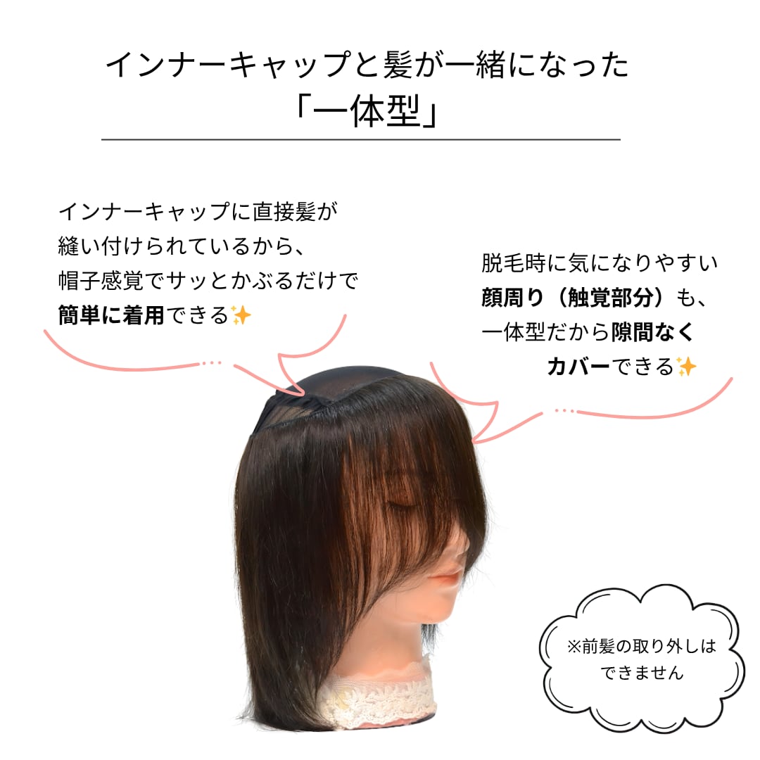 インナーキャップにすでに髪が縫い付けられている一体型なので、ネットをかぶる感覚でスポッと着用するだけ。忙しい朝や急な来客時にも、一瞬で準備が完了します。