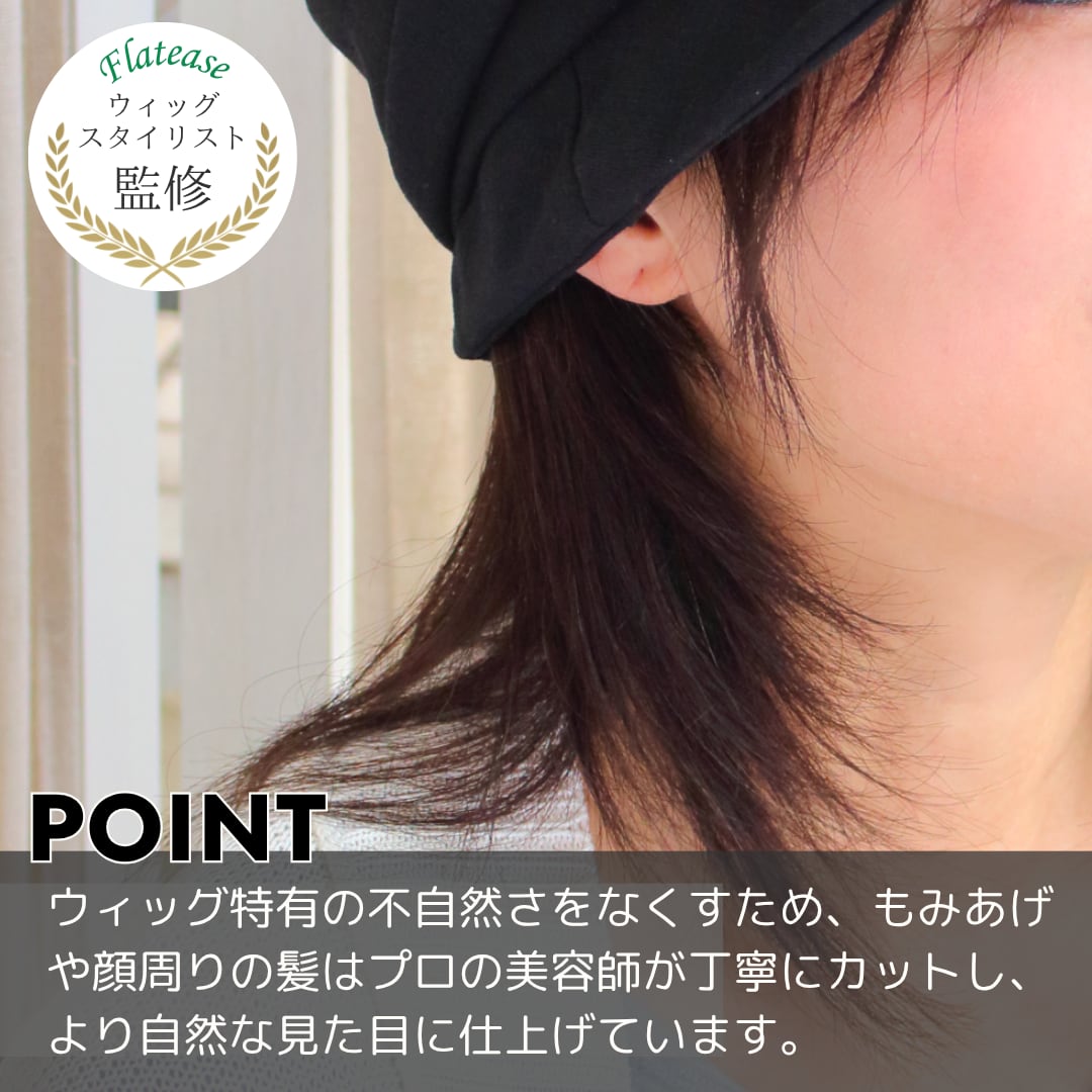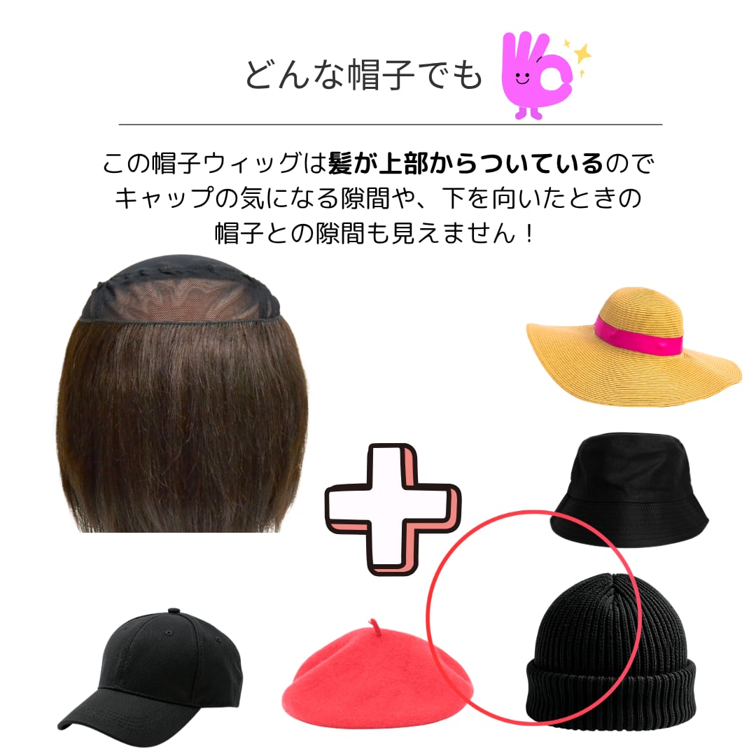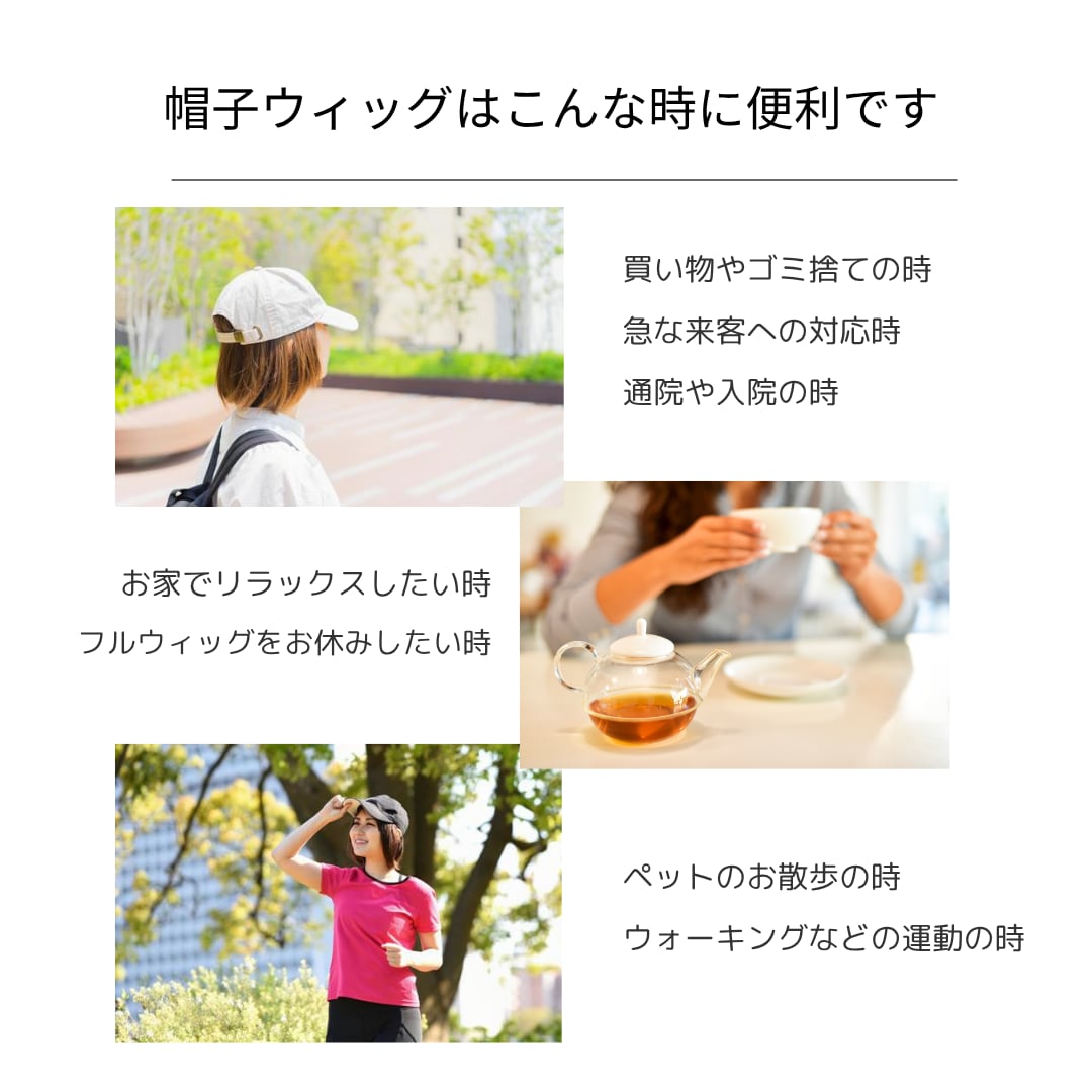 「ちょっとそこまでのお買い物」や「急な宅配便の対応」、また「フルウィッグをお休みしたい日」に大活躍する、帽子の下にかぶるための専用ウィッグです。