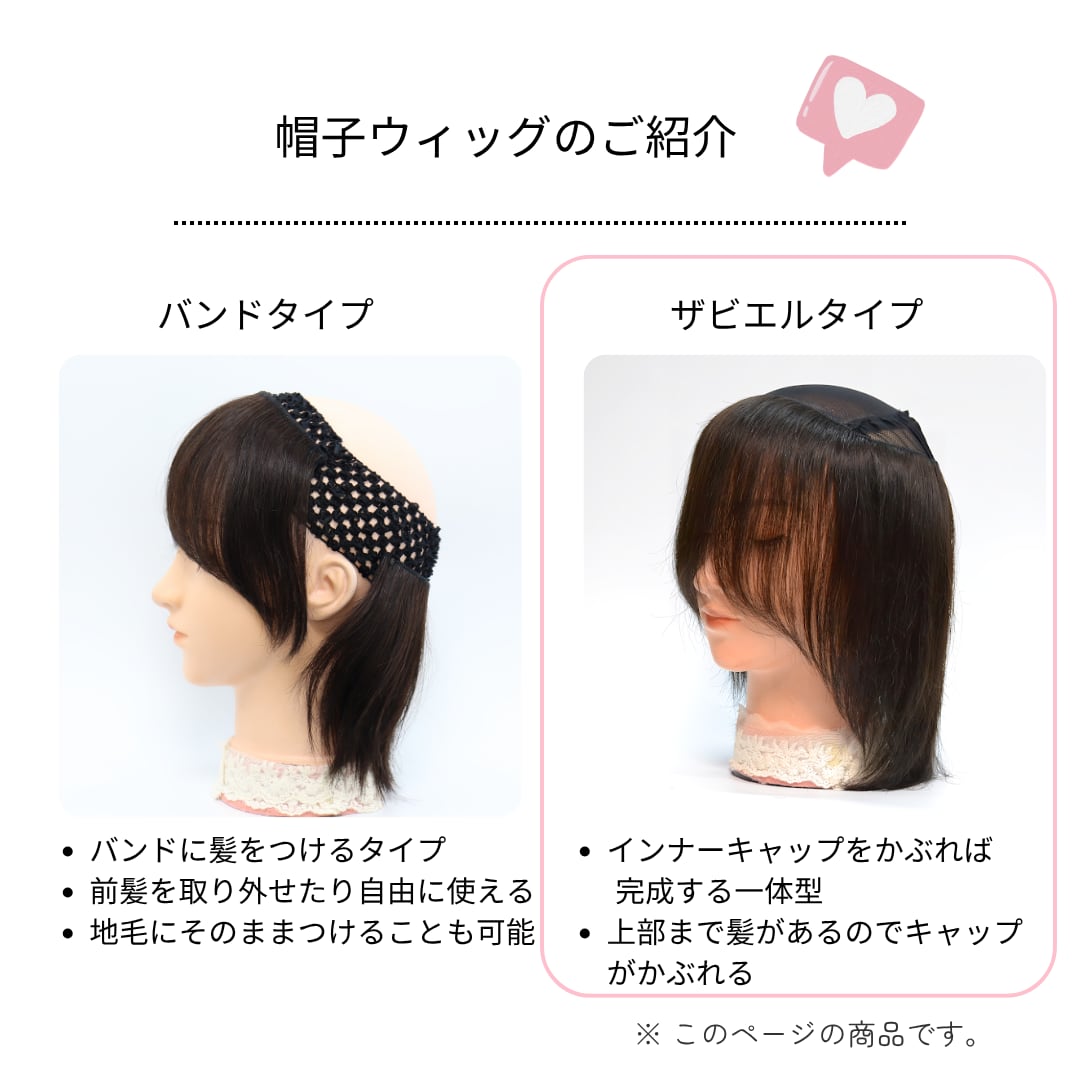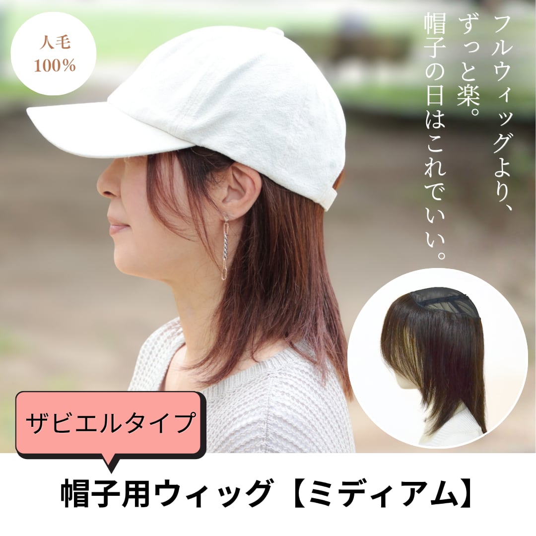 人毛100% 帽子用ウィッグ(ザビエルタイプ)ミディアムヘア|浅い帽子・キャップもOK 髪付きウィッグ インナーウィッグ 髪付き帽子 医療用ウィッグ