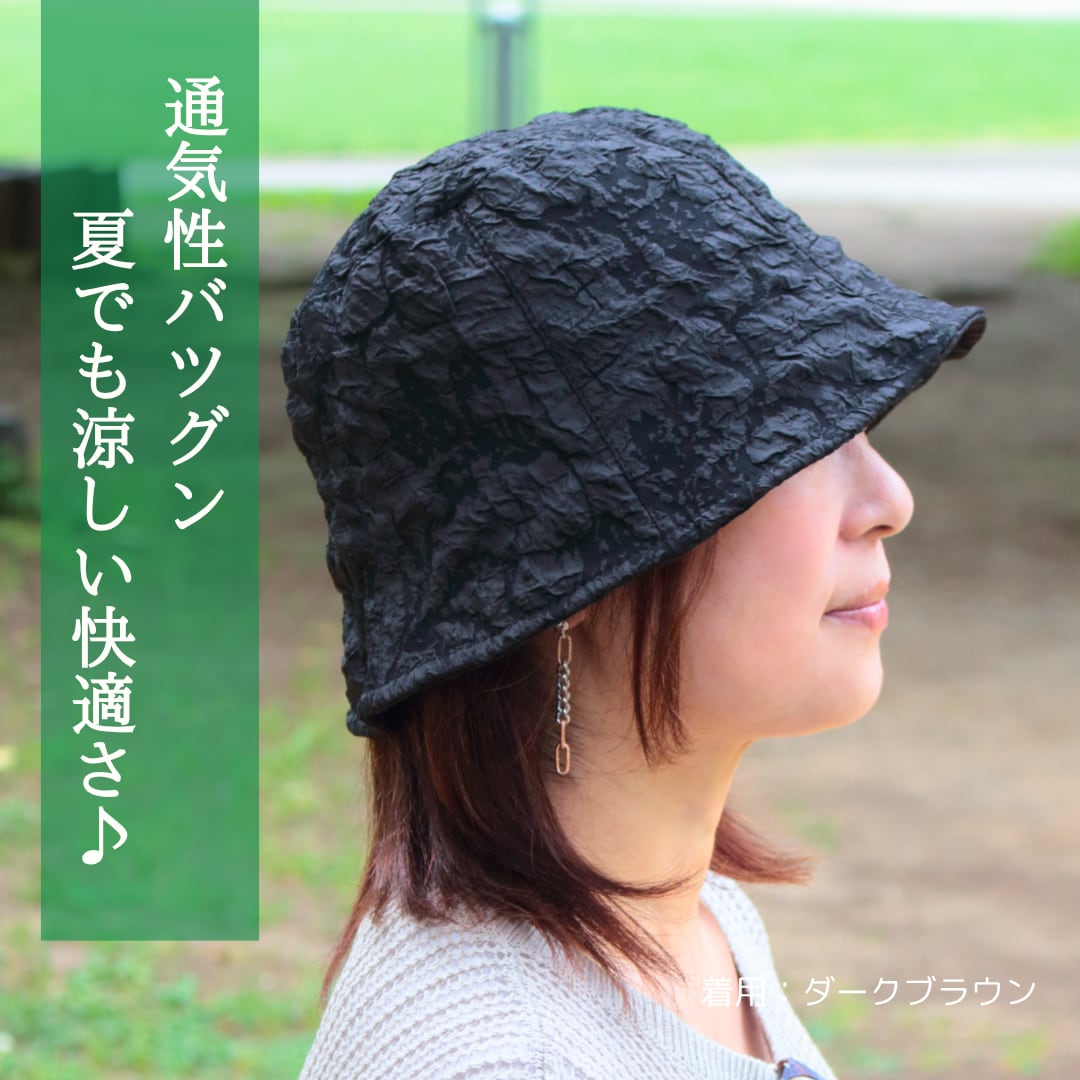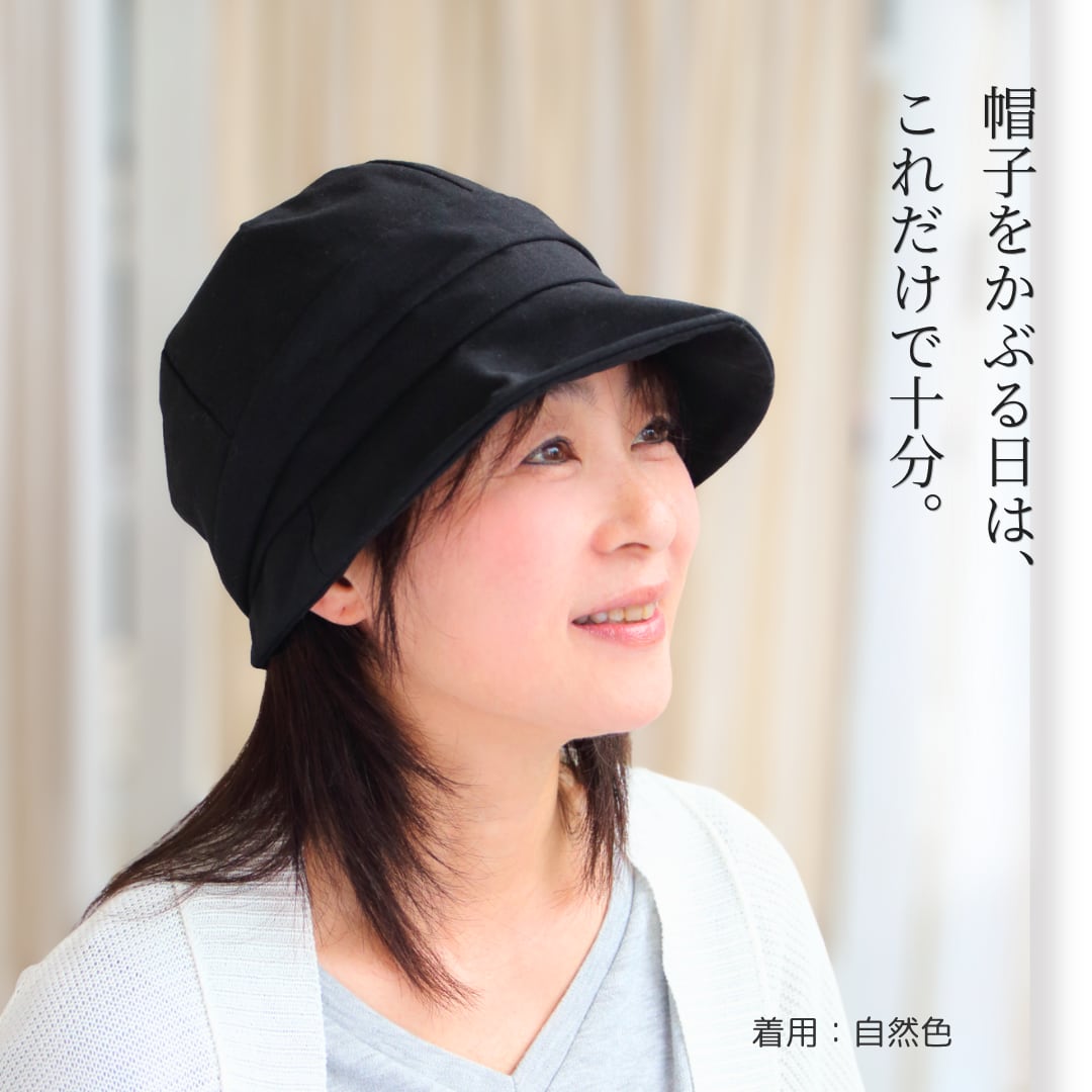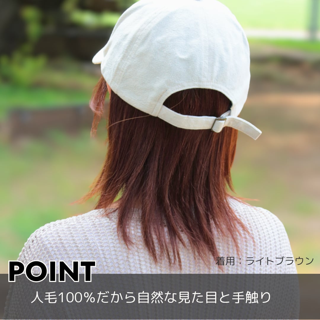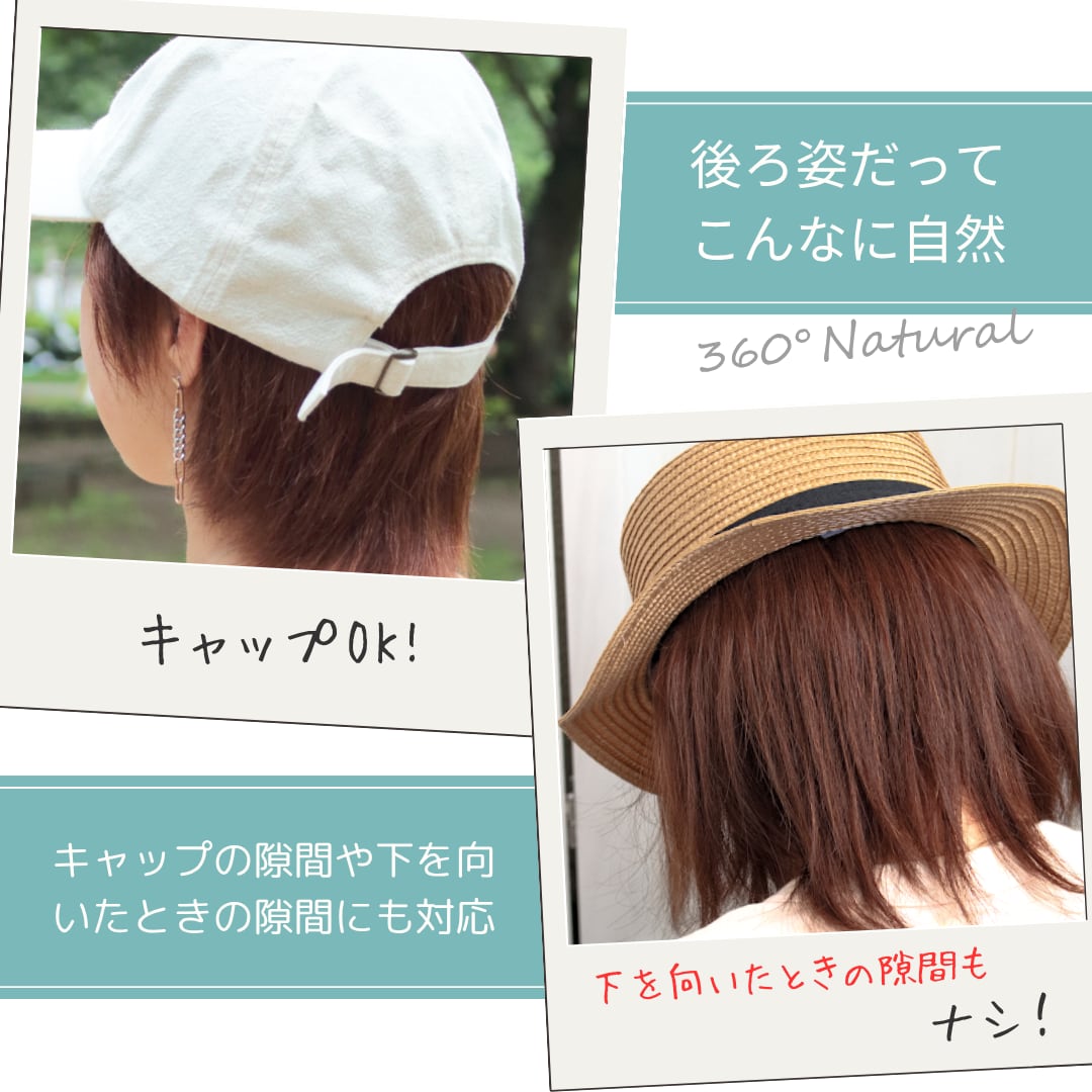 ・頭の上部までインナーキャップがある構造のため、ネットの隙間から頭皮が見える心配がありません。キャップや、浅めのベレー帽・麦わら帽子など、幅広い帽子のおしゃれを楽しめます。