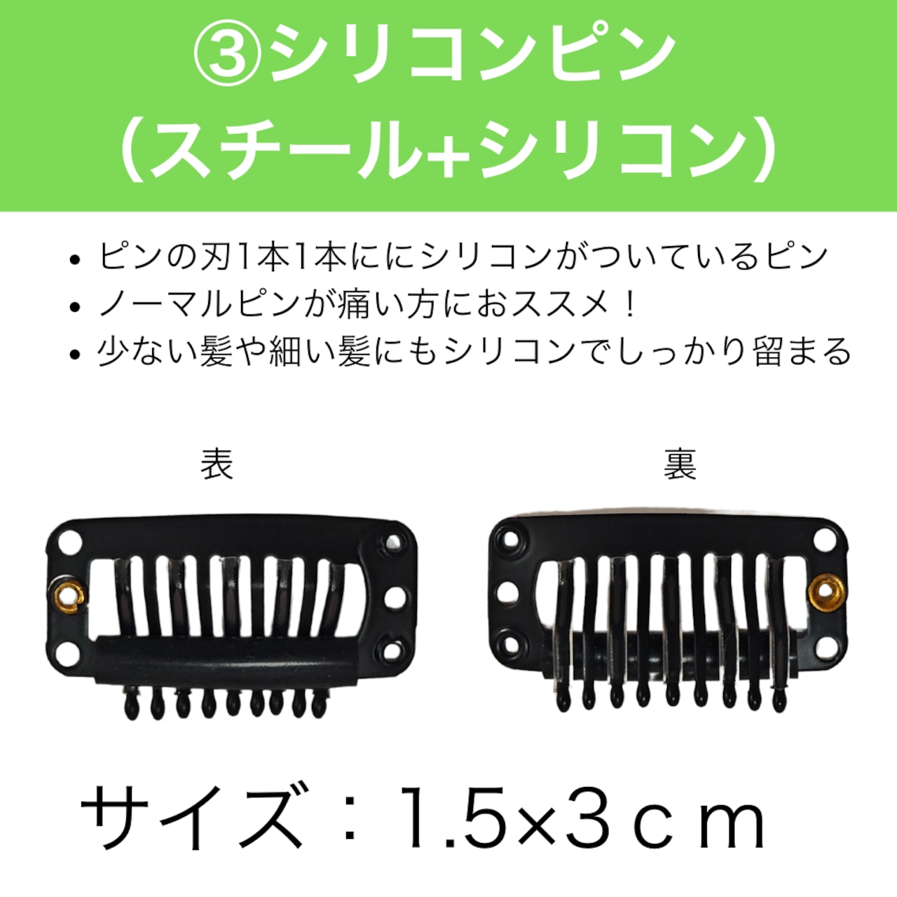 種類:スチールピン/樹脂ピン/シリコンピン/ダブルピン (※選択可能)