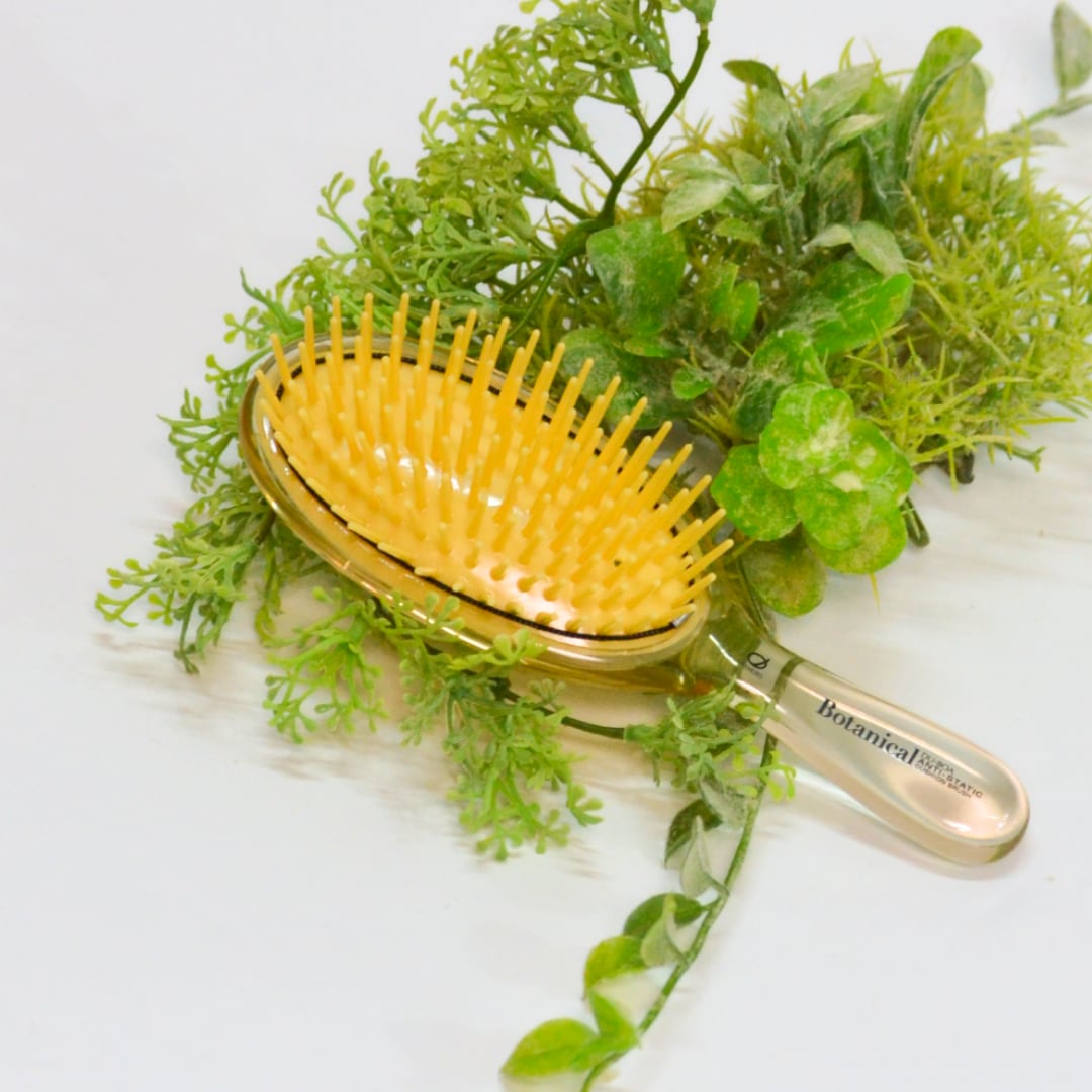「DU-BOA ダメージケアクッションブラシ」は、アマニオイルを練り込んだピンが特長の、髪に優しいボタニカルヘアブラシ。