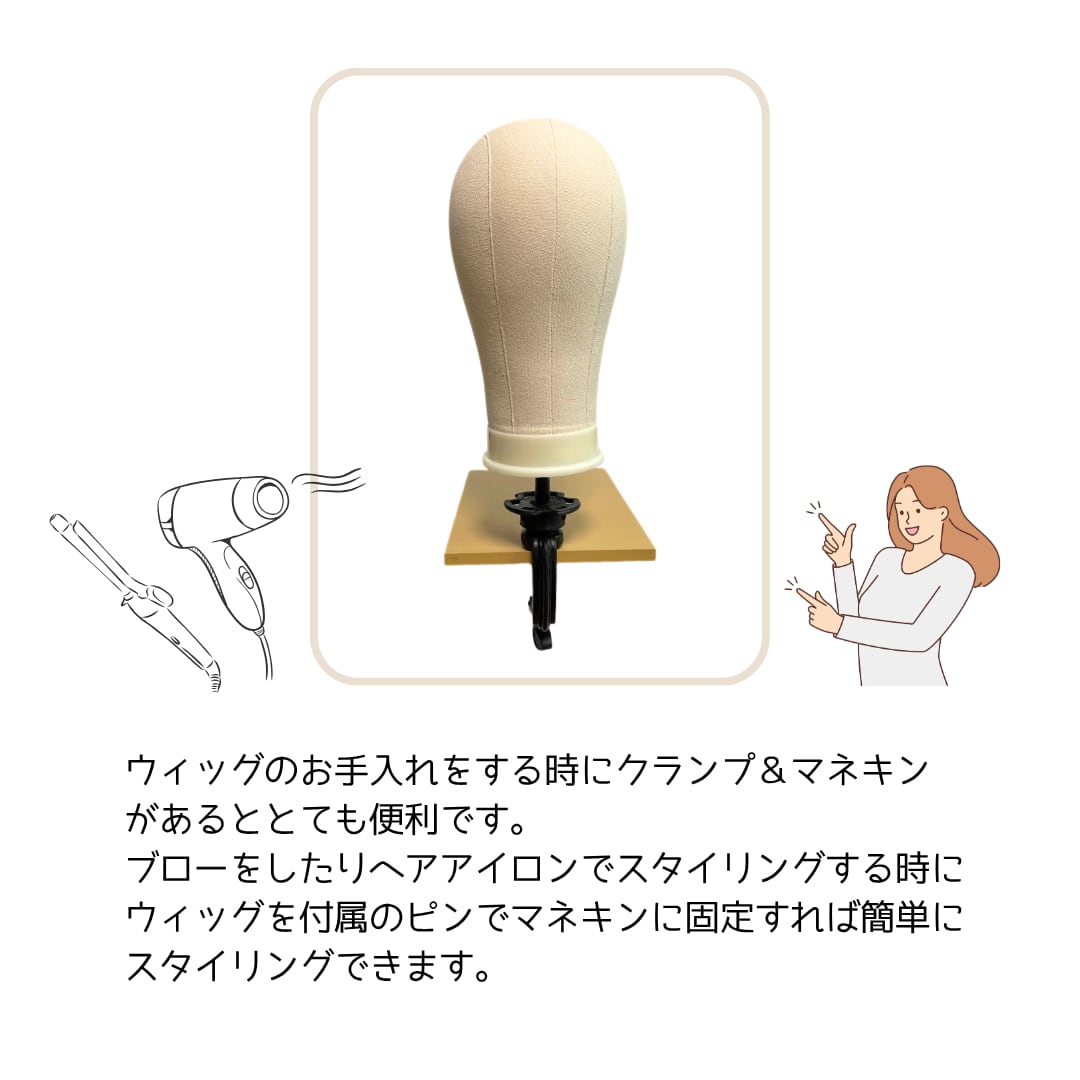 ・ウィッグを固定した状態でのカット・ブラッシング・スタイリングが可能
