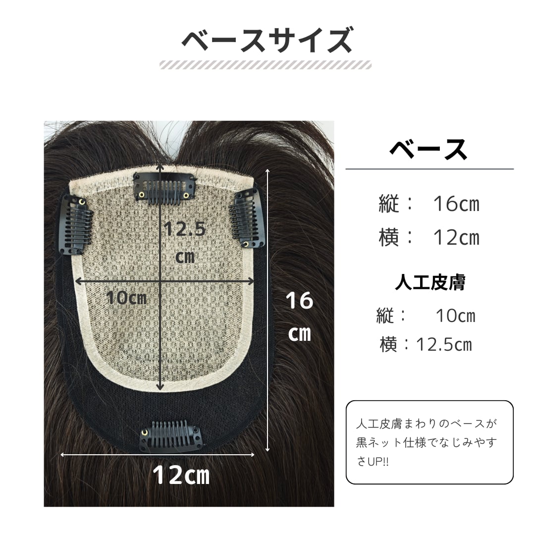 抗がん剤治療・脱毛症などによって髪がまだらに生えそろわない方や、広範囲の薄毛に悩む方のために、【12×16cm】の大きめベースで頭頂部の広い範囲をしっかりカバーできる仕様になっています。
