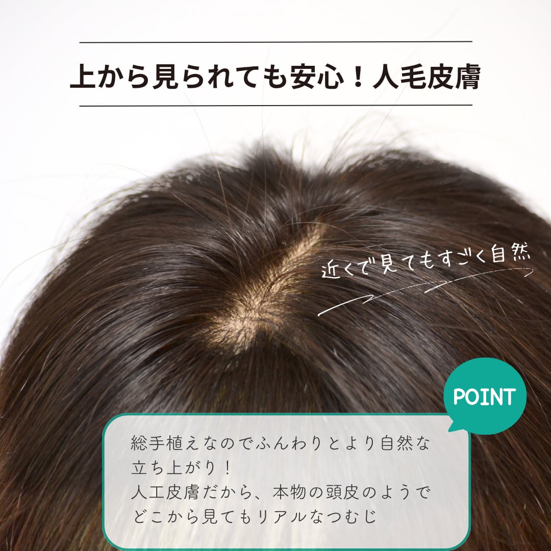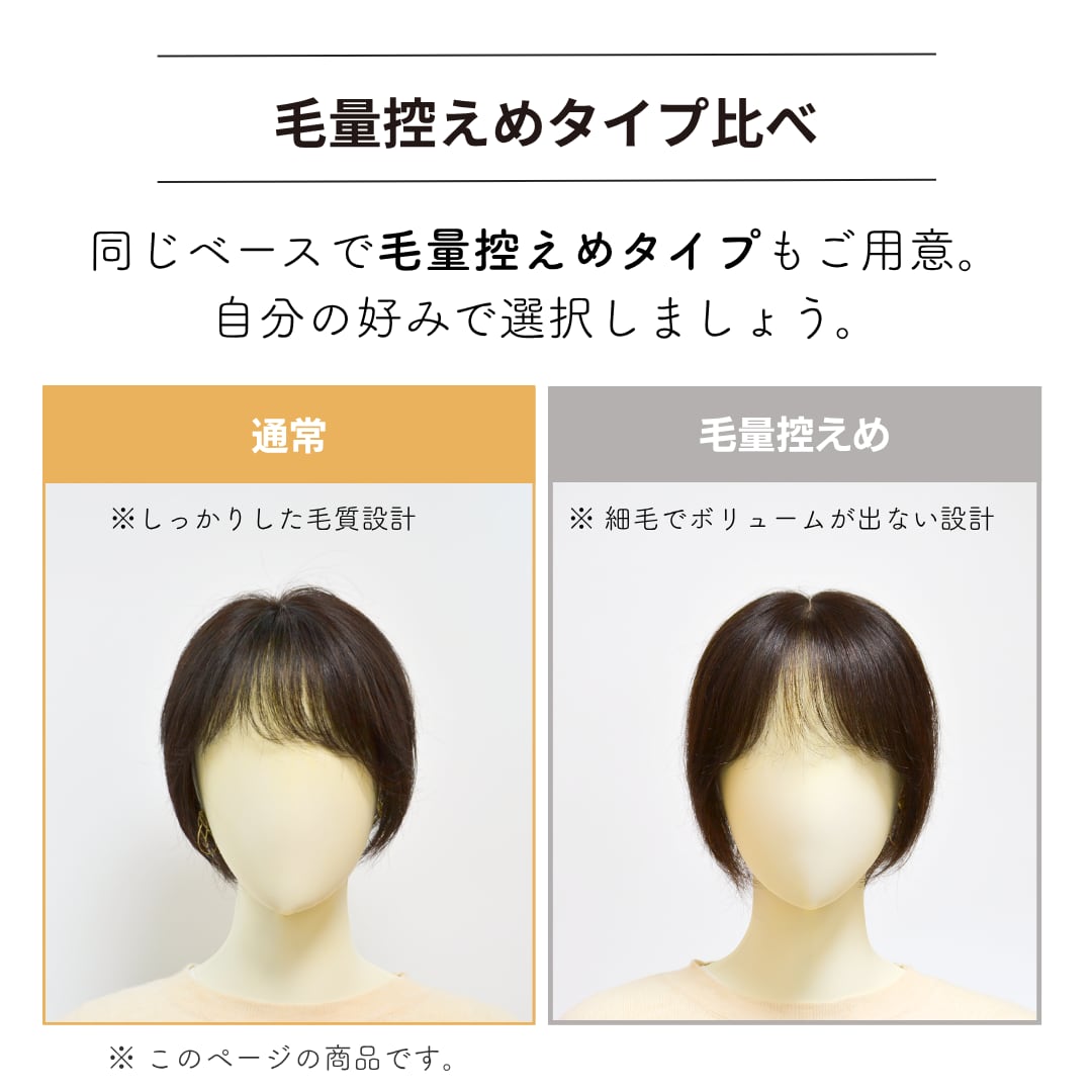 少なすぎず多すぎないこだわりの【普通毛量タイプ】で、気になる地肌を「しっかり」隠しながら、まるで自分の髪が増えたような自然なシルエットを実現します。
