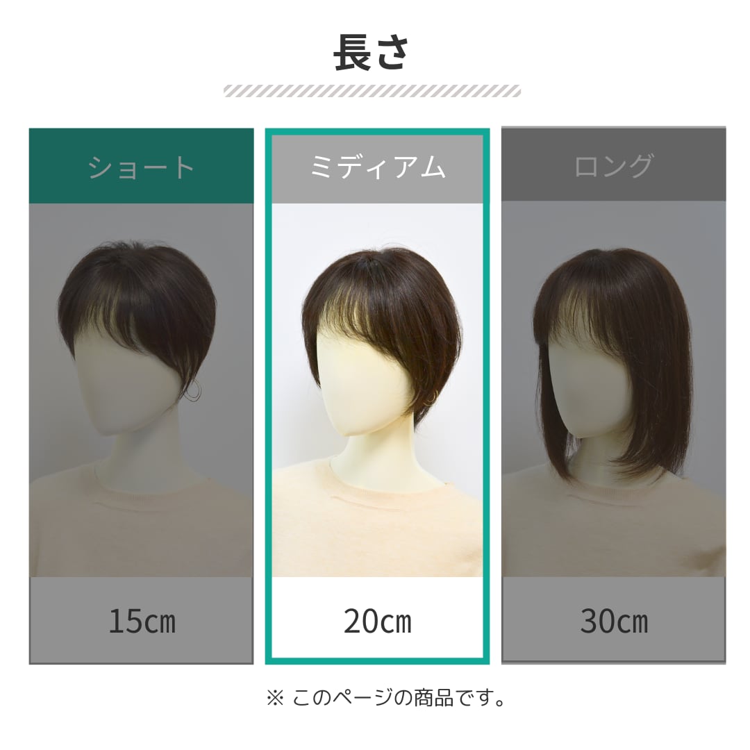 人毛100% 広範囲カバーウィッグ 【毛量普通タイプ】ミディアムヘア トップピース 自然に見える 薄毛・白髪しっかりカバー【12×16cm】|ボリュームアップ
