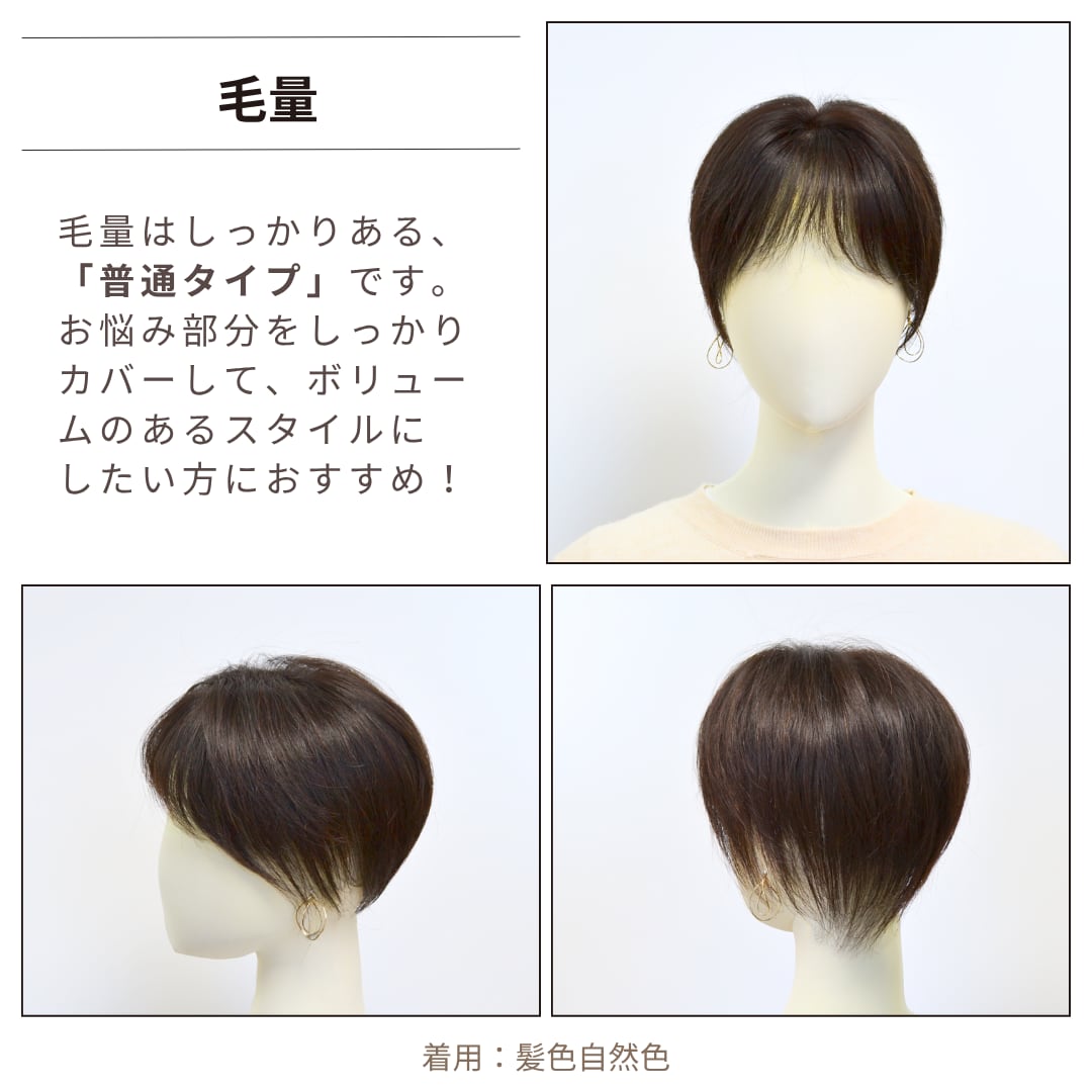 少なすぎず多すぎないこだわりの【普通毛量タイプ】で、気になる地肌を「しっかり」隠しながら、まるで自分の髪が増えたような自然なシルエットを実現します。
