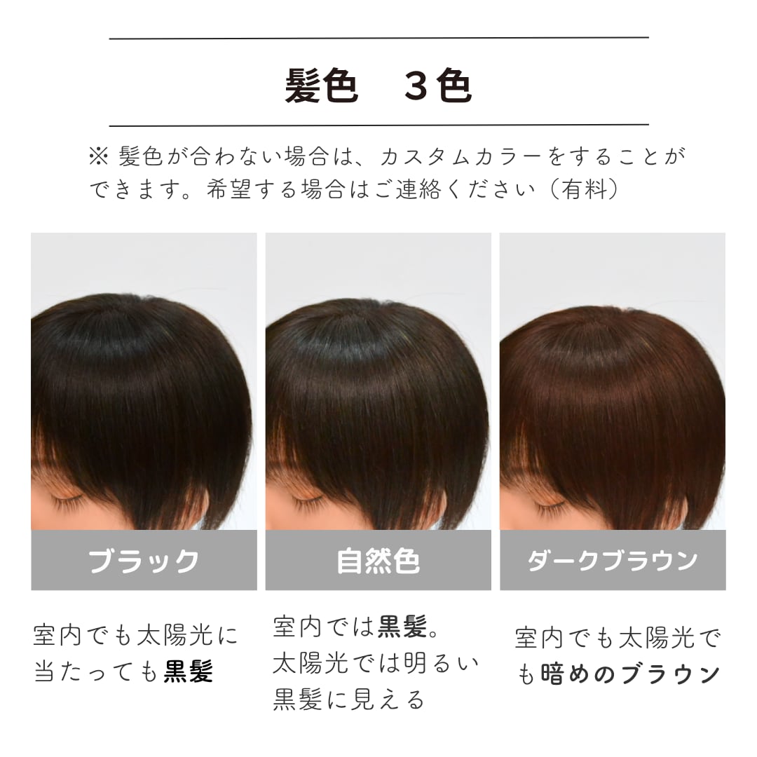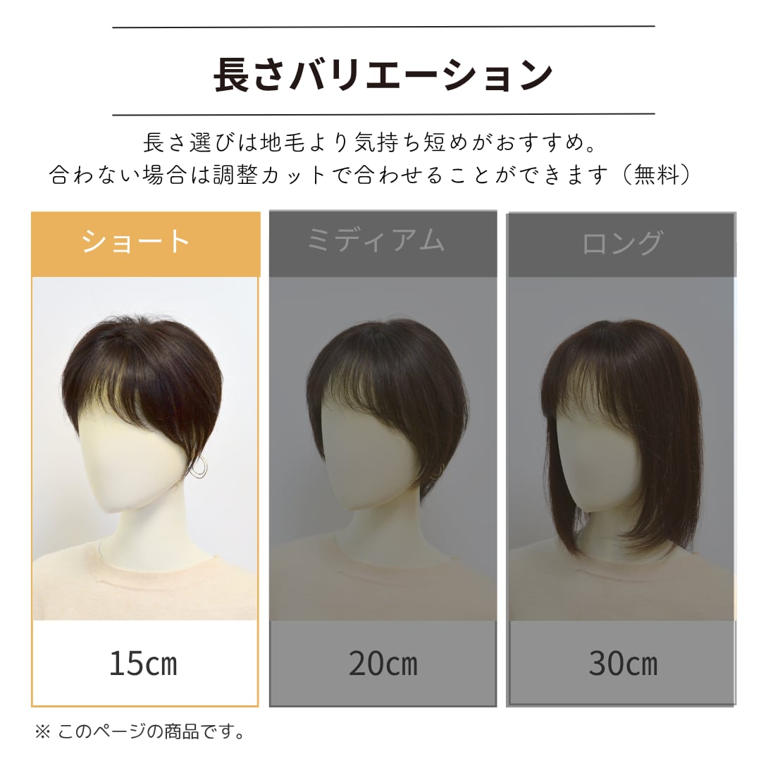 人毛100% 広範囲カバーウィッグ 【毛量普通タイプ】 ショートヘア用 (12×16cm) トップからつむじまでしっかり薄毛・白髪隠し ヘアピース 自然なボリューム