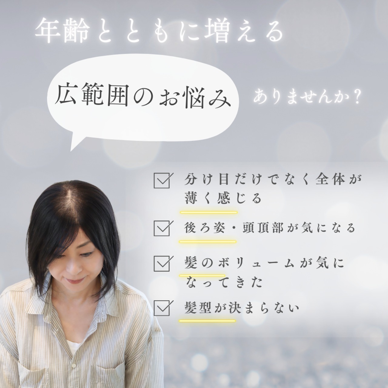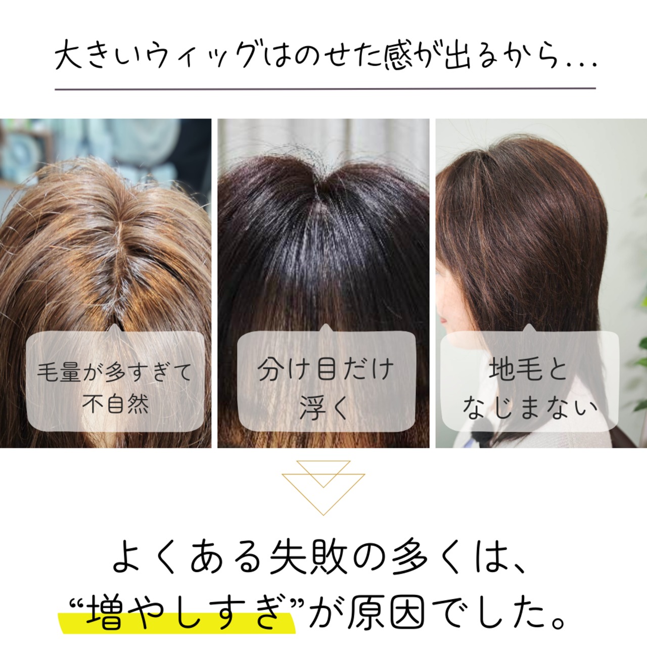 自分の髪に自然に溶け込む、上から見られても安心のウィッグをぜひお試しください!