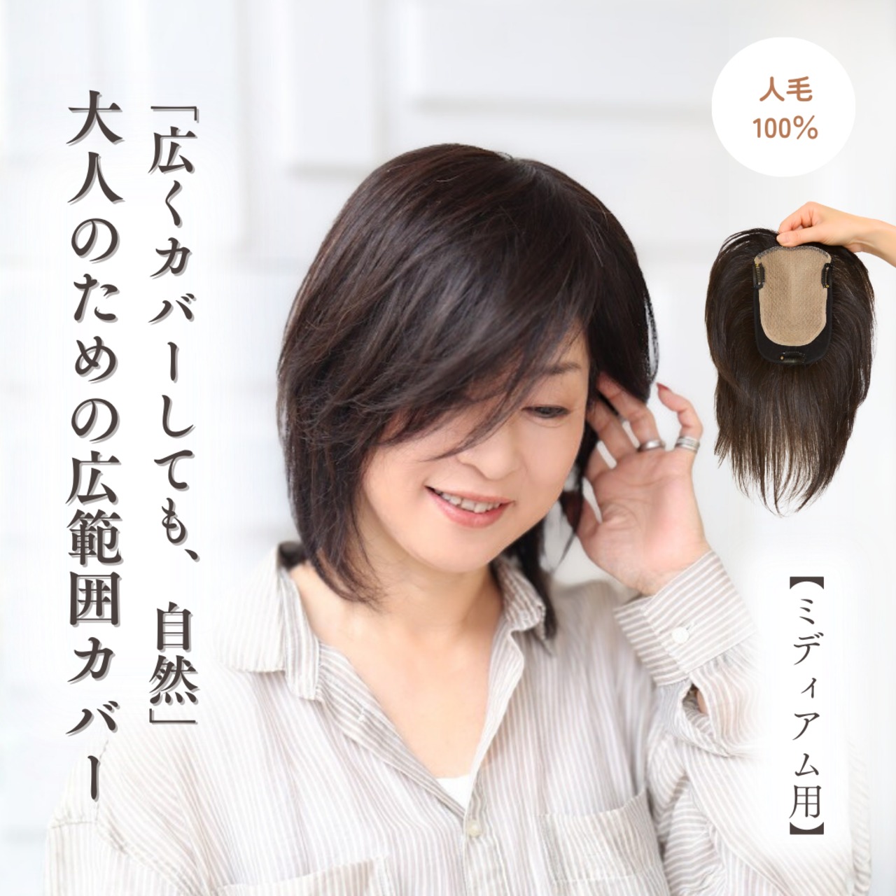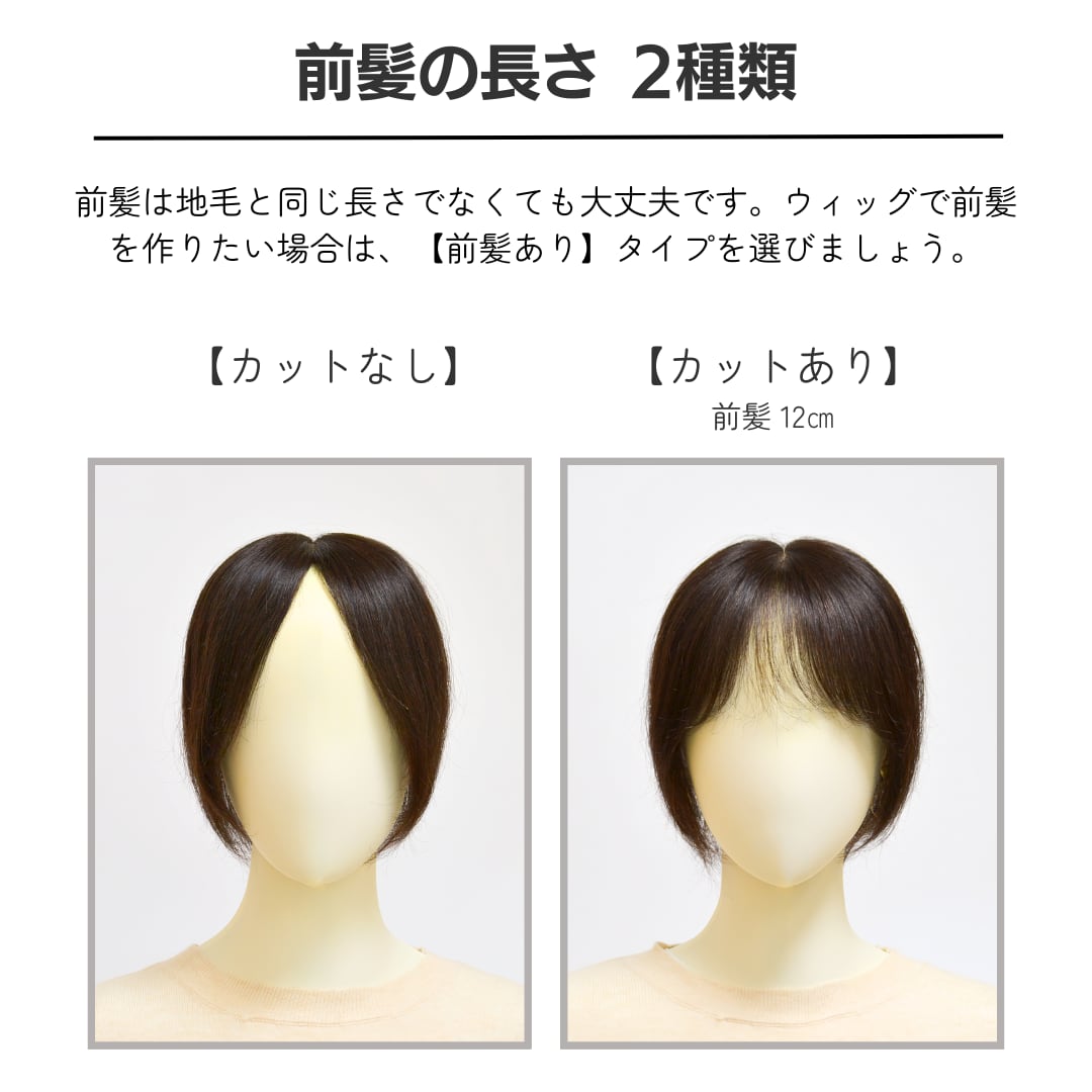 人毛100% 毛量控えめ 広範囲カバーウィッグ 12×16cm(ミディアムヘア用)