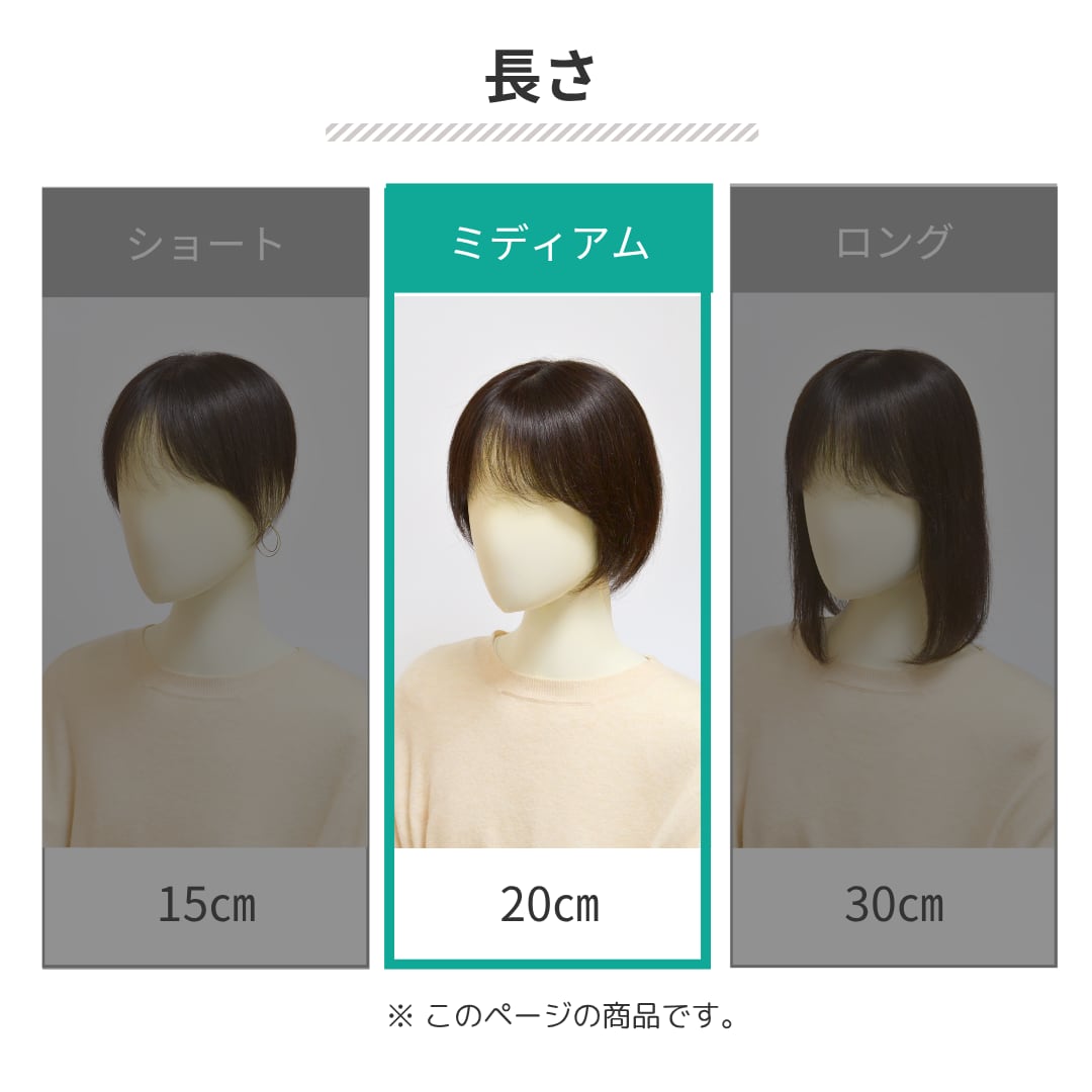 【試着・返品OK】人毛100% 毛量控えめタイプ 広範囲カバーウィッグ ミディアムヘア トップピース 自然な仕上がり 薄毛カバー【12×16cm】|軽やかタイプ