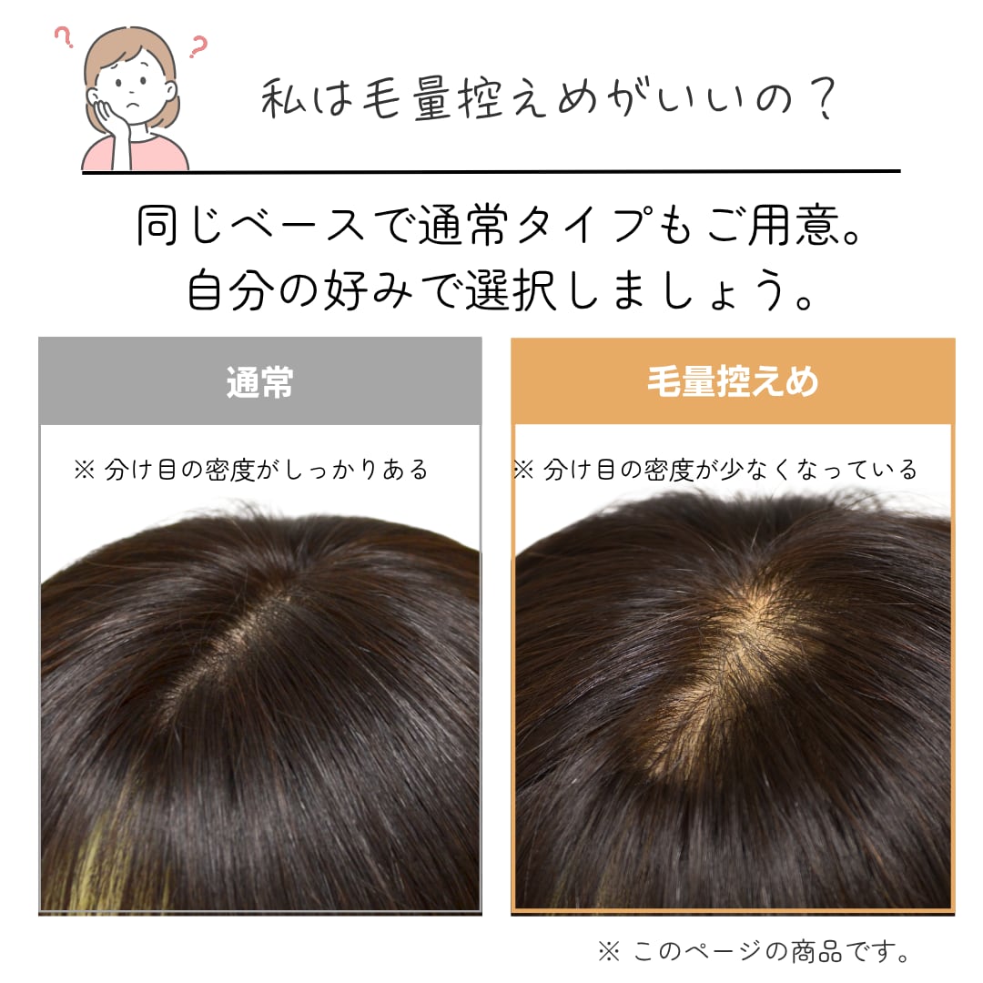 そんな「広範囲カバー=毛量が多い・不自然」というこれまでの常識を覆すのが、この【12×16cm大きめベース・毛量控えめタイプ】のウィッグです。