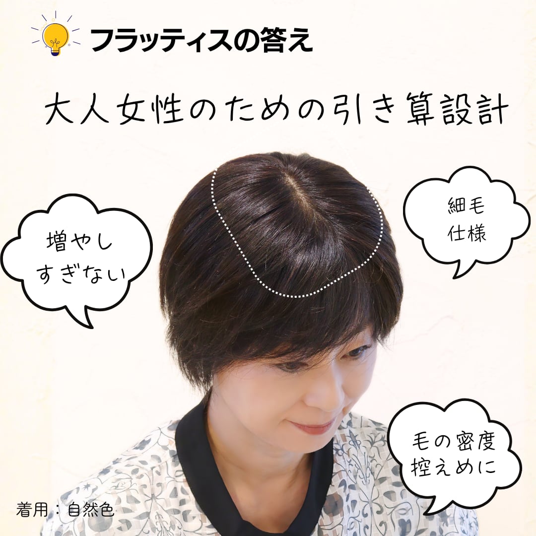 2. カツラっぽさゼロ!あえて盛らない「毛量控えめ」設計