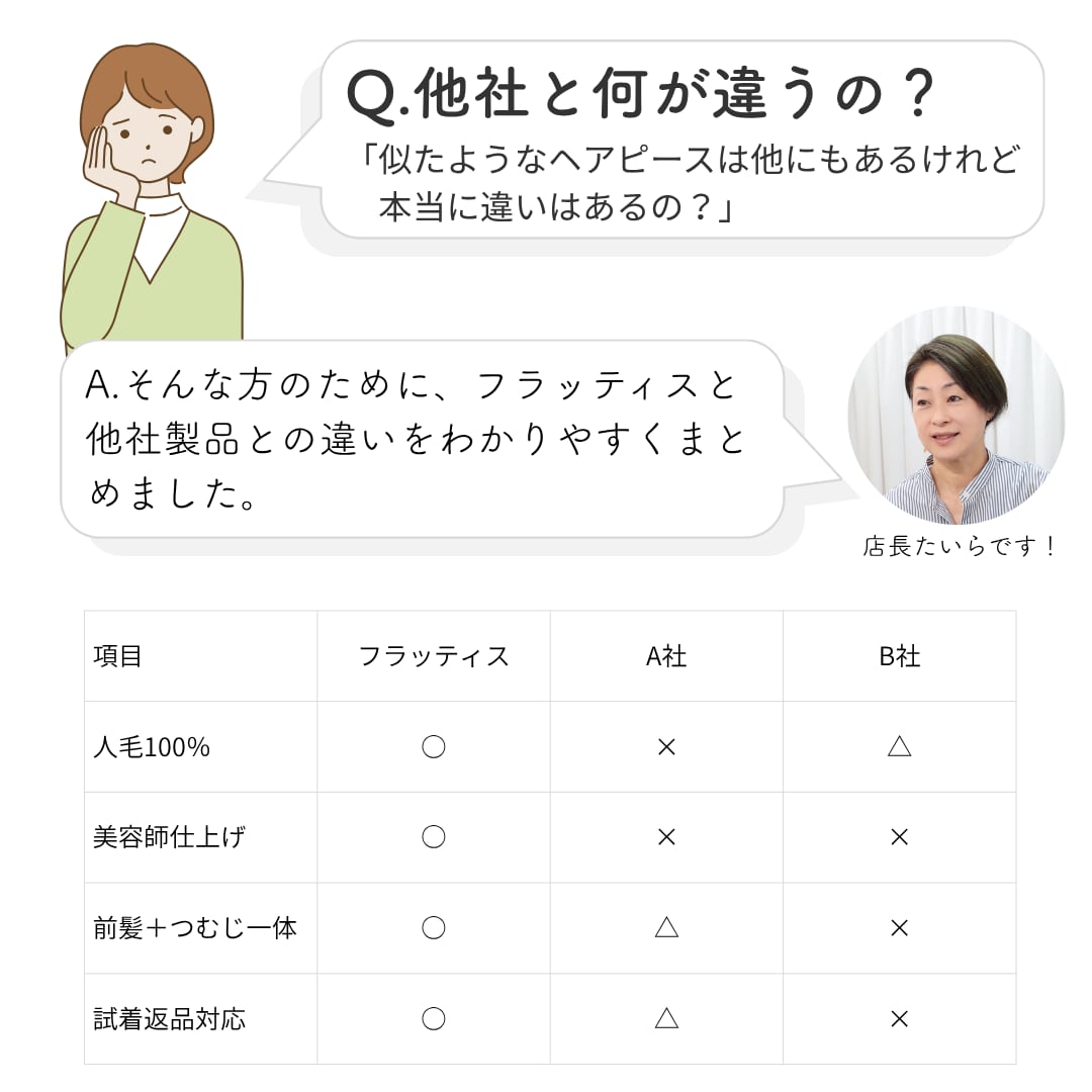 さらに、プロの美容師が地毛にスッと馴染むよう計算してカットを施しているため、届いたその日から自然に使えます。
