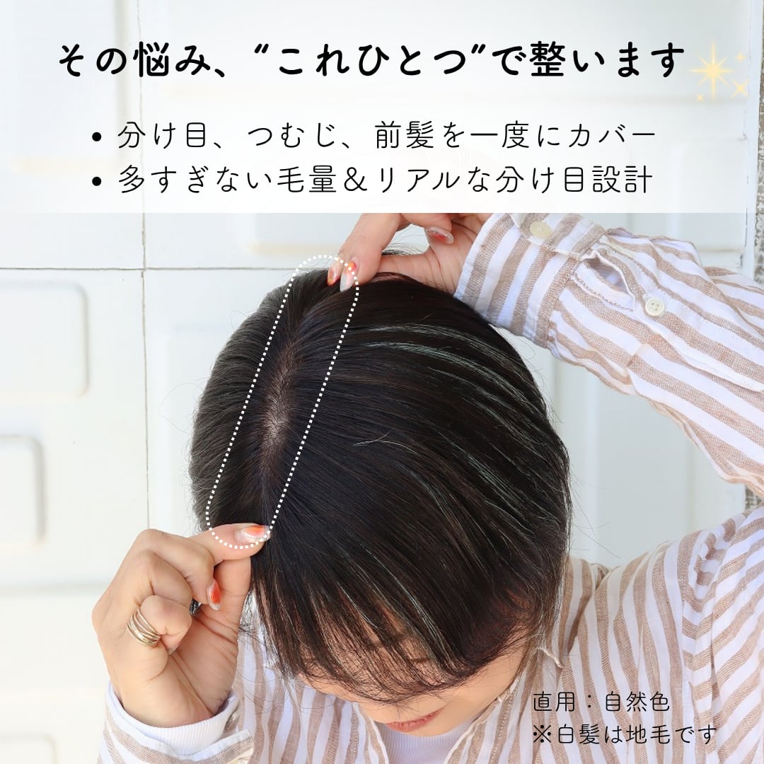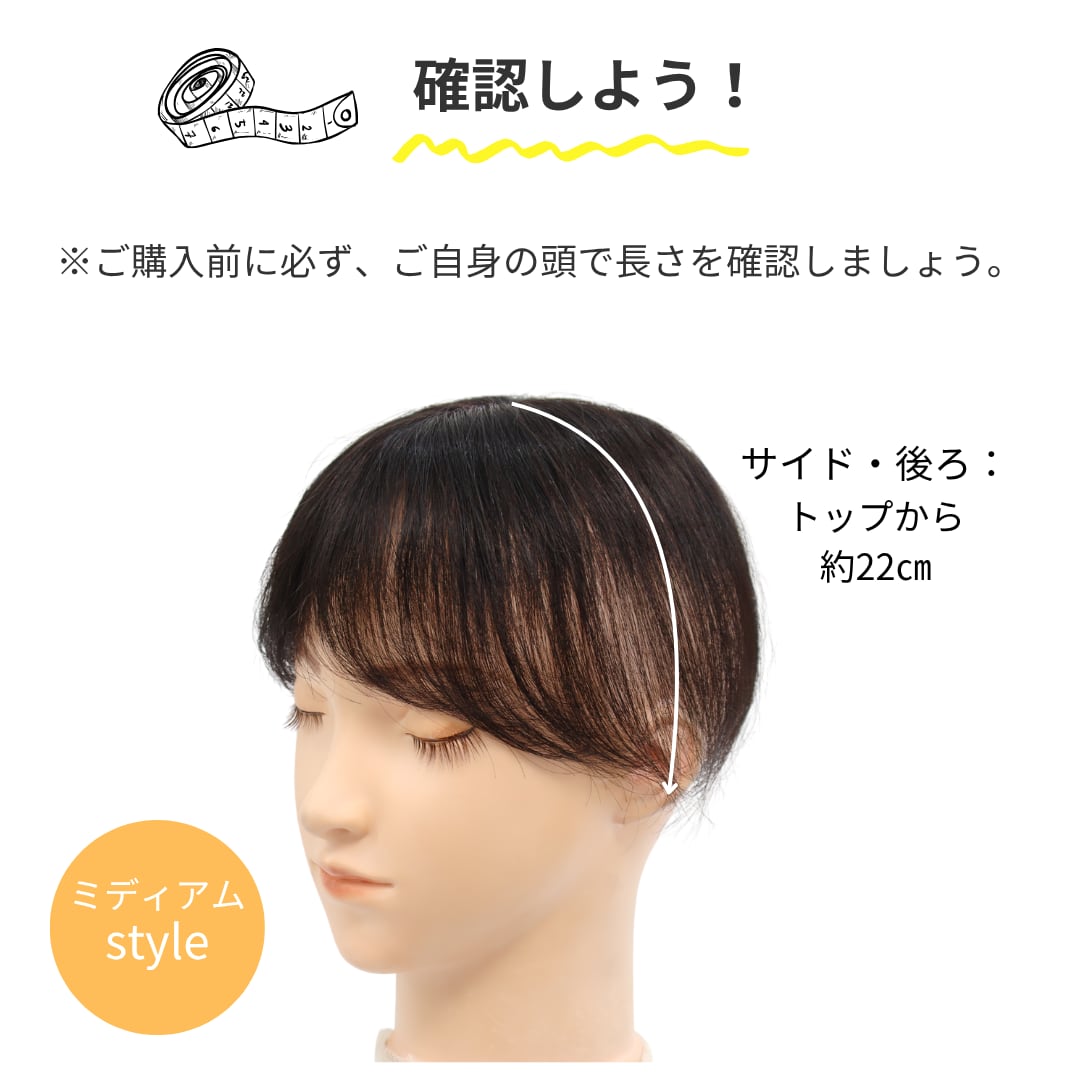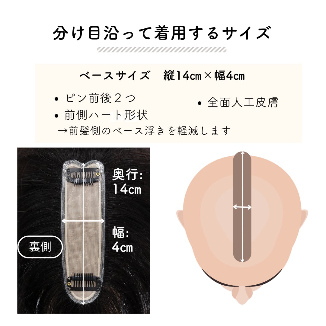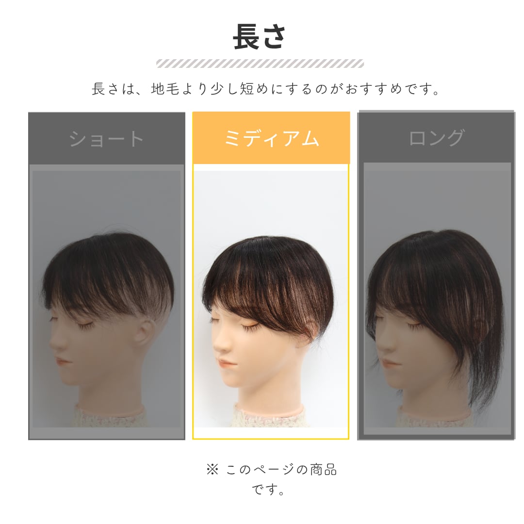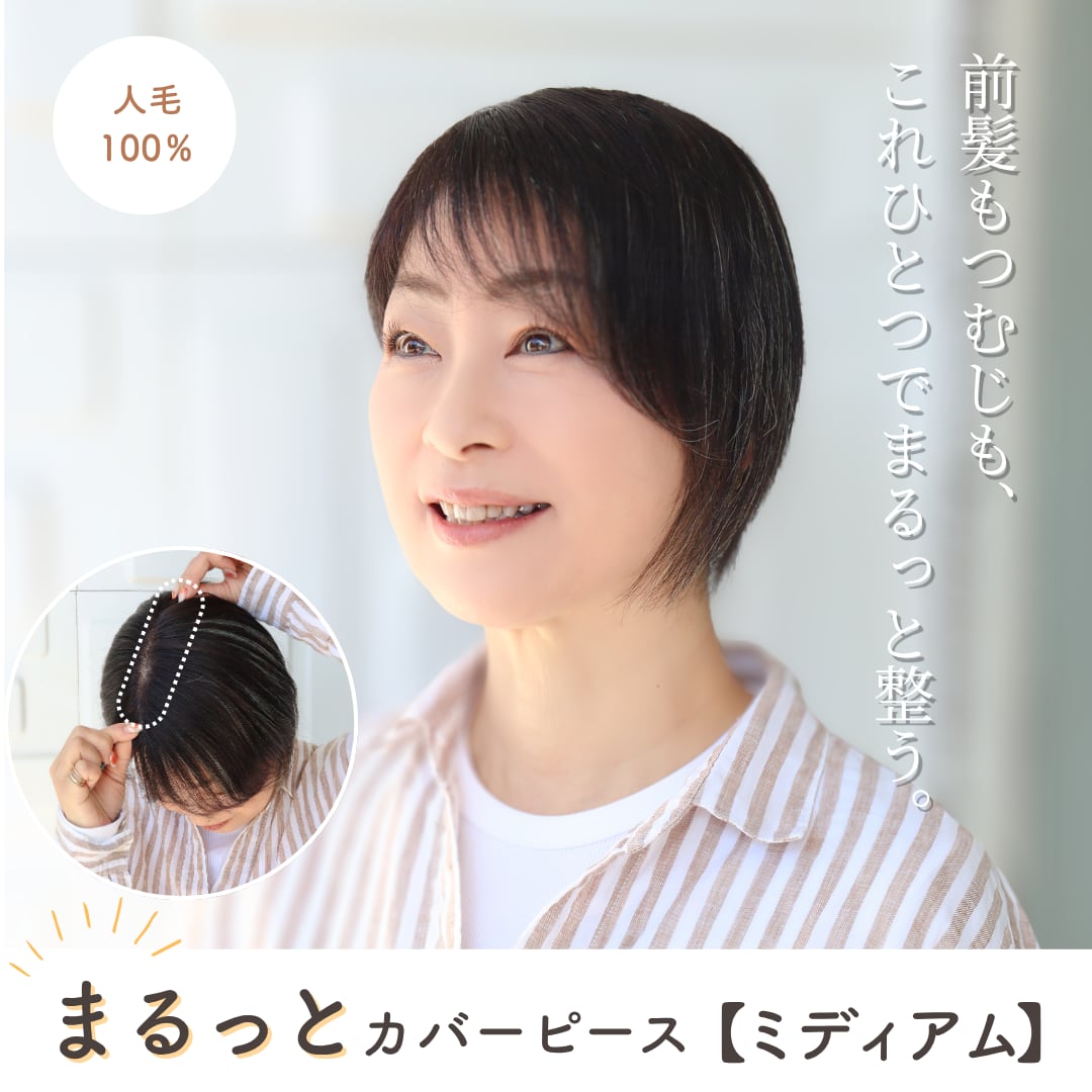 人毛100% まるっとカバーピース ミディアム用 部分ウィッグ 前髪・分け目・つむじ割れ同時カバー 美容師カット 盛りすぎない自然な毛量 4×14cm