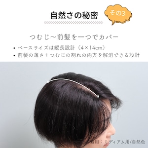 人毛100% まるっとカバーピース ミディアムヘア 前髪+分け目+つむじカバー 自然に見える 薄毛カバー 部分ウィッグ【4×14cm】|トップふんわり