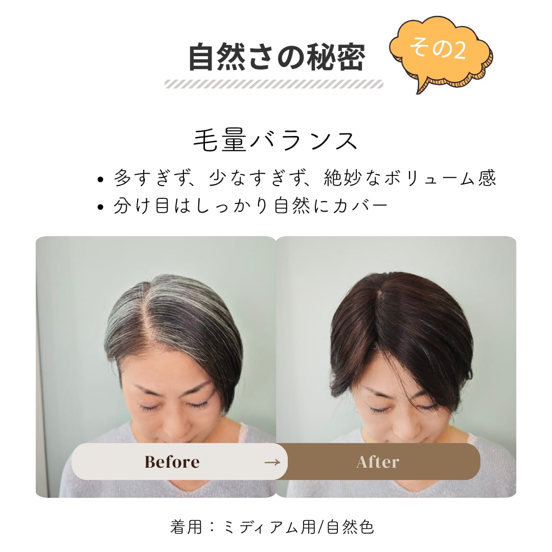素材は人毛100%。地毛と見分けがつかないほど自然なツヤと質感で、