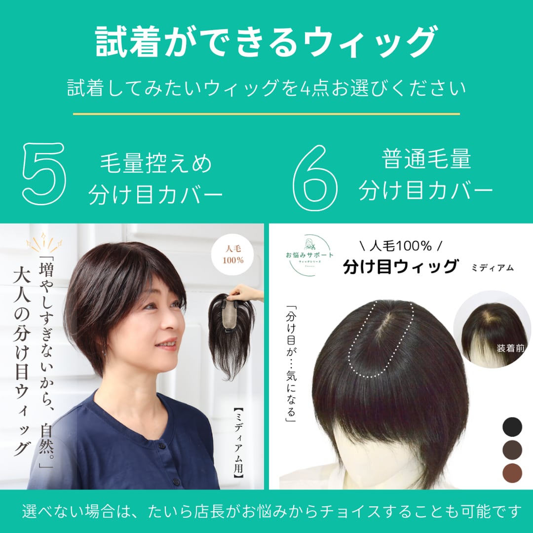 お送りする試着ウィッグは、日程調整をさせて頂くメールにてご希望をお聞きいたします。
