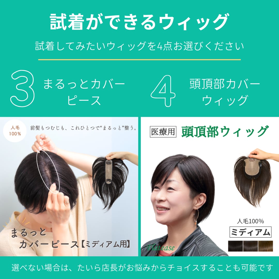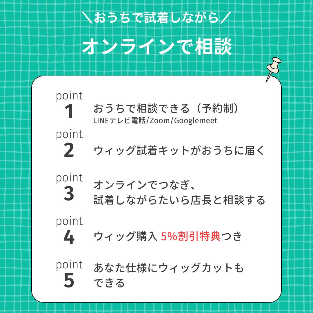 ご自宅にウィッグの試着キットをお届けし、たいら店長とオンラインでお話ししながら試着できるサービスです。