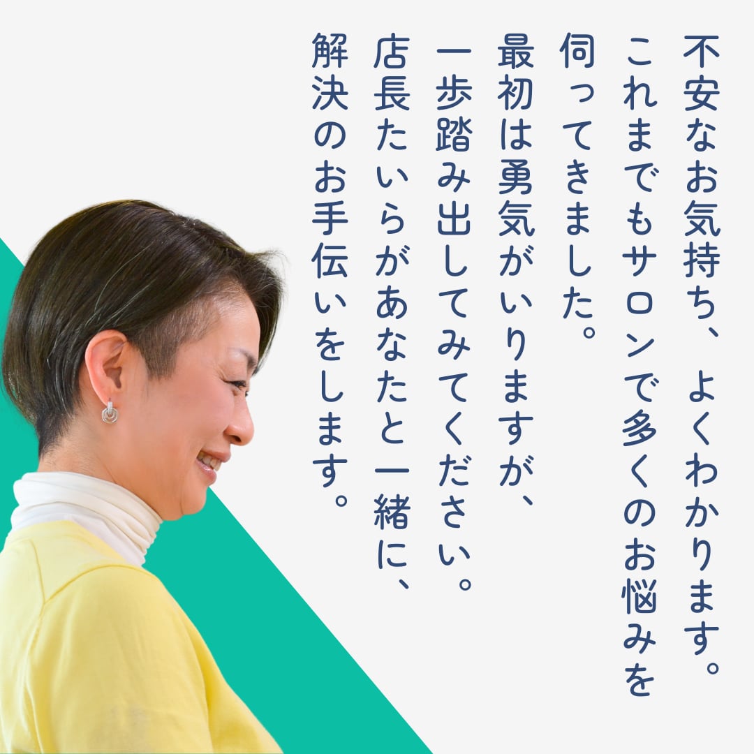 あなたにぴったりのウィッグを、たいら店長と一緒に見つけていきましょう。