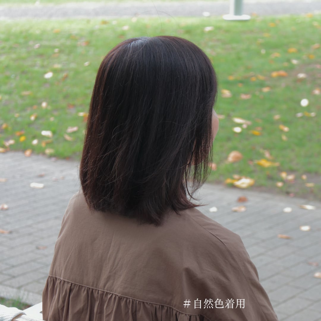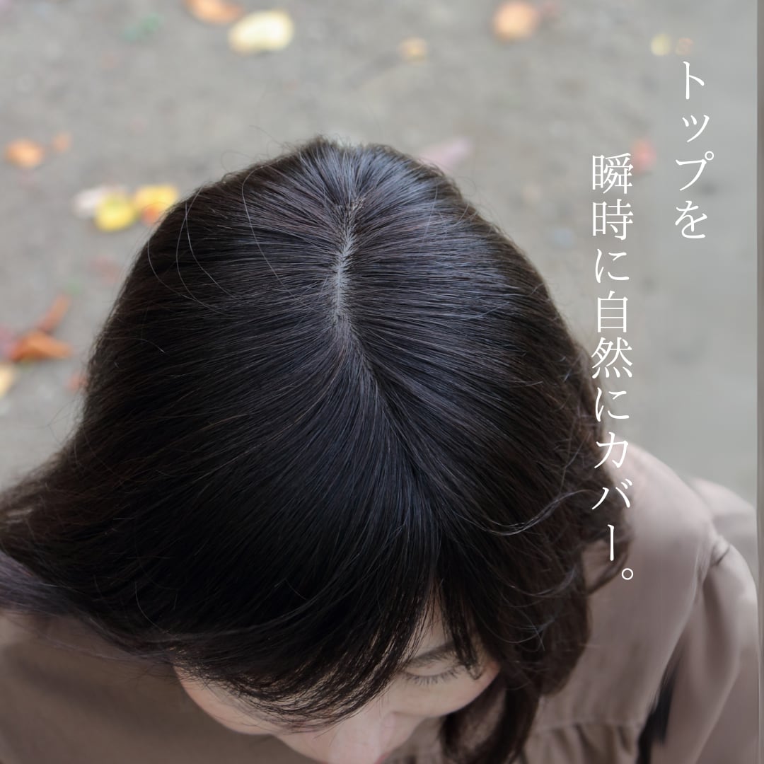 こちらのウィッグは、人毛を100%使用しているため、地毛によく馴染み、とても自然な仕上がりです。まるで自分の髪が増えたかのように、悩み部分をしっかりカバーしてふんわりとしたボリュームをプラスできます。