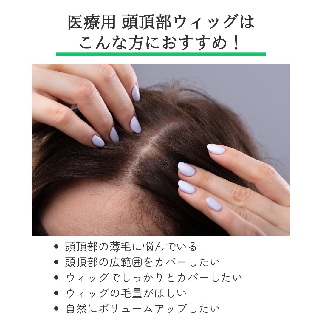 「頭頂部の薄毛が気になる…」そんなお悩みを、**人毛100%**のウィッグで自然にカバーしませんか?