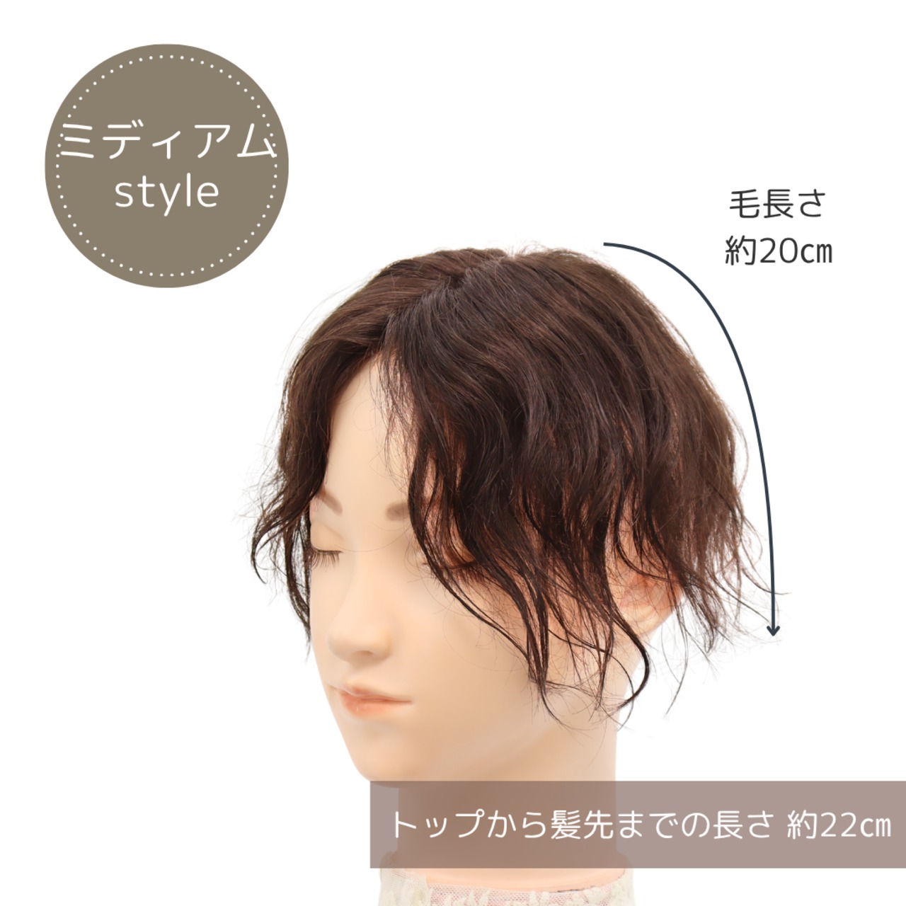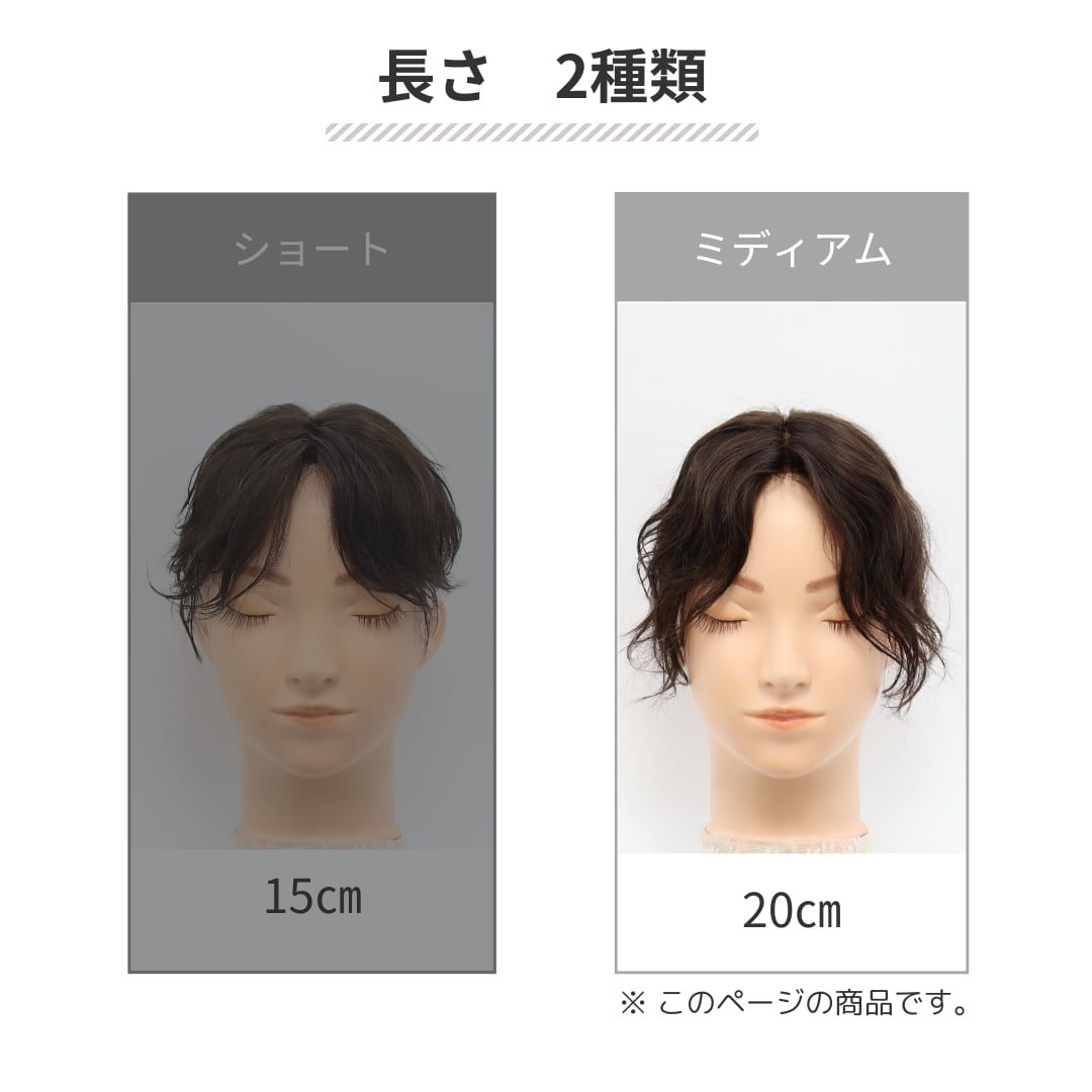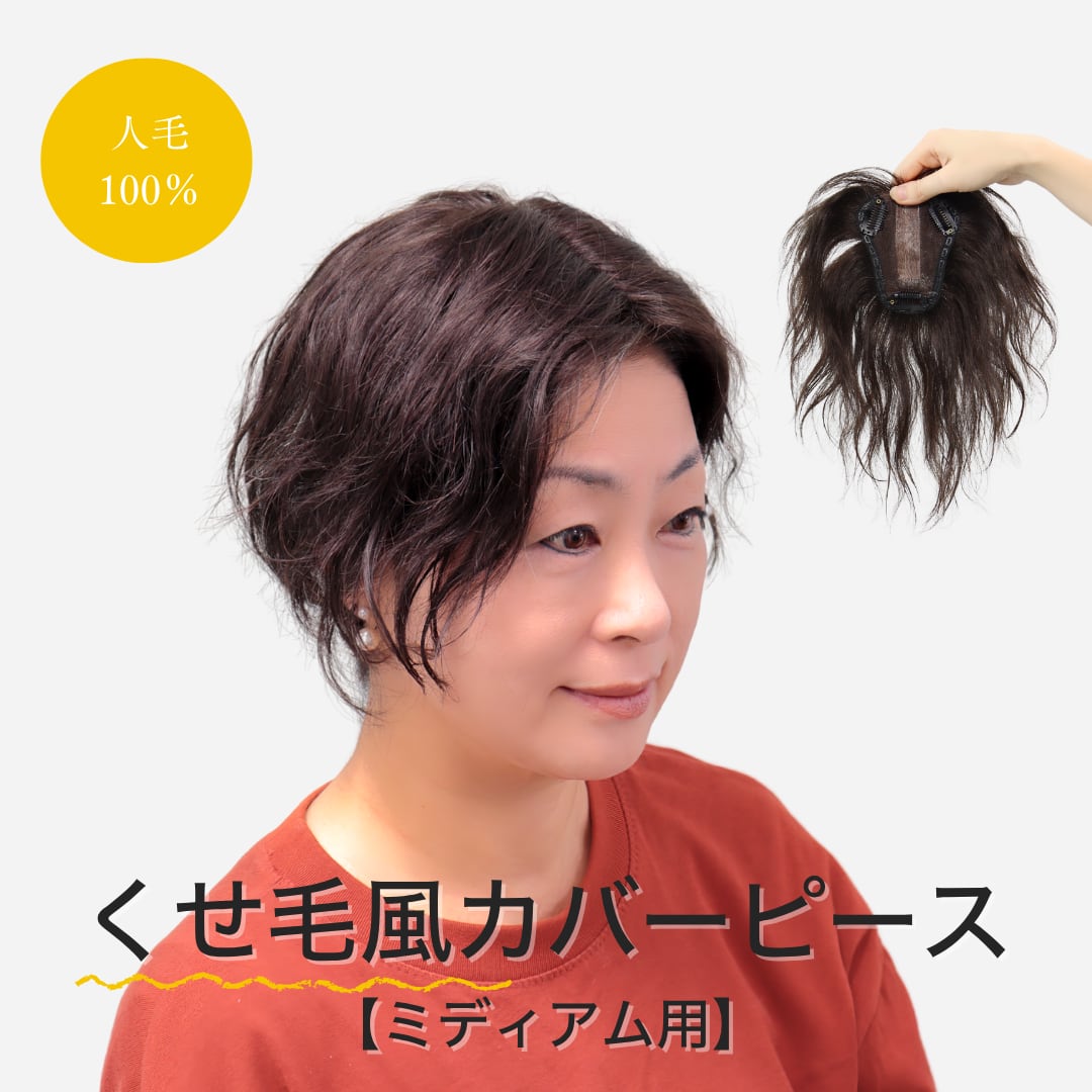 前髪や分け目をふんわりカバーしながら、ミディアムヘアになじむ長さで全体を軽やかにボリュームアップしてくれるカバーピースです。