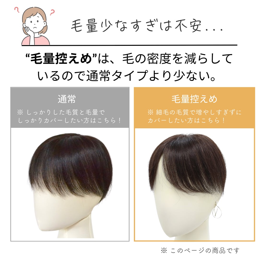そんな大人女性のリアルなお声から生まれたのが、この【毛量控えめタイプ】の分け目カバーウィッグ(7×14cm)です。