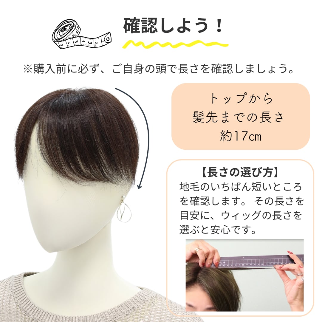 人毛100% 毛量控えめ 分け目カバーウィッグ ショートヘア用 (7×14cm) 盛らない自然なヘアピース 薄毛・白髪隠し 長方形タイプ