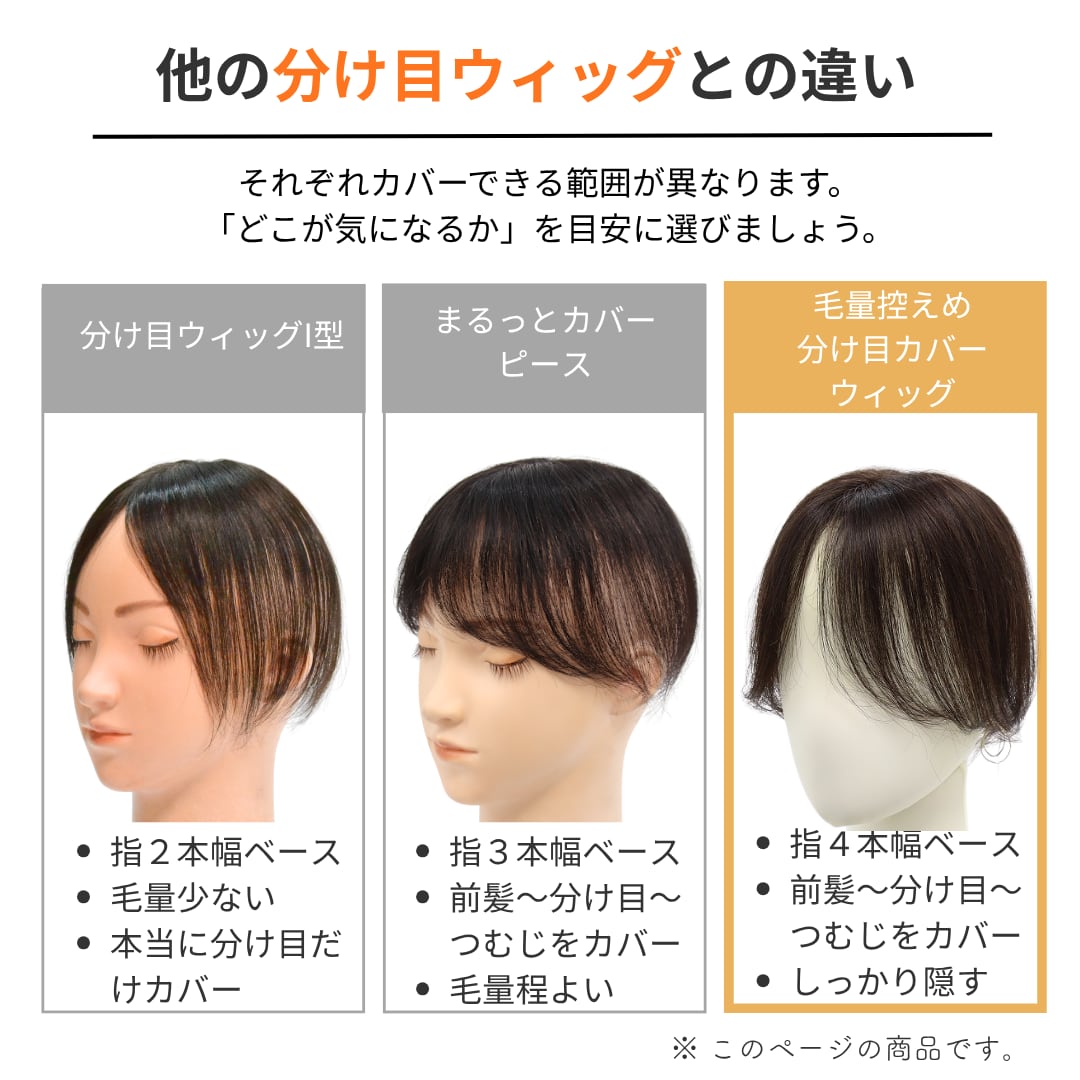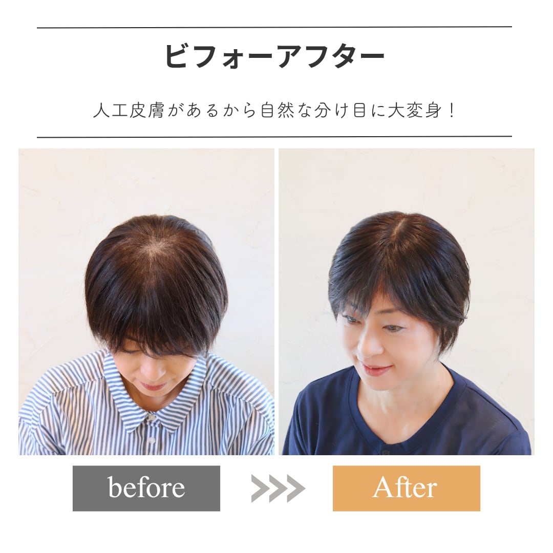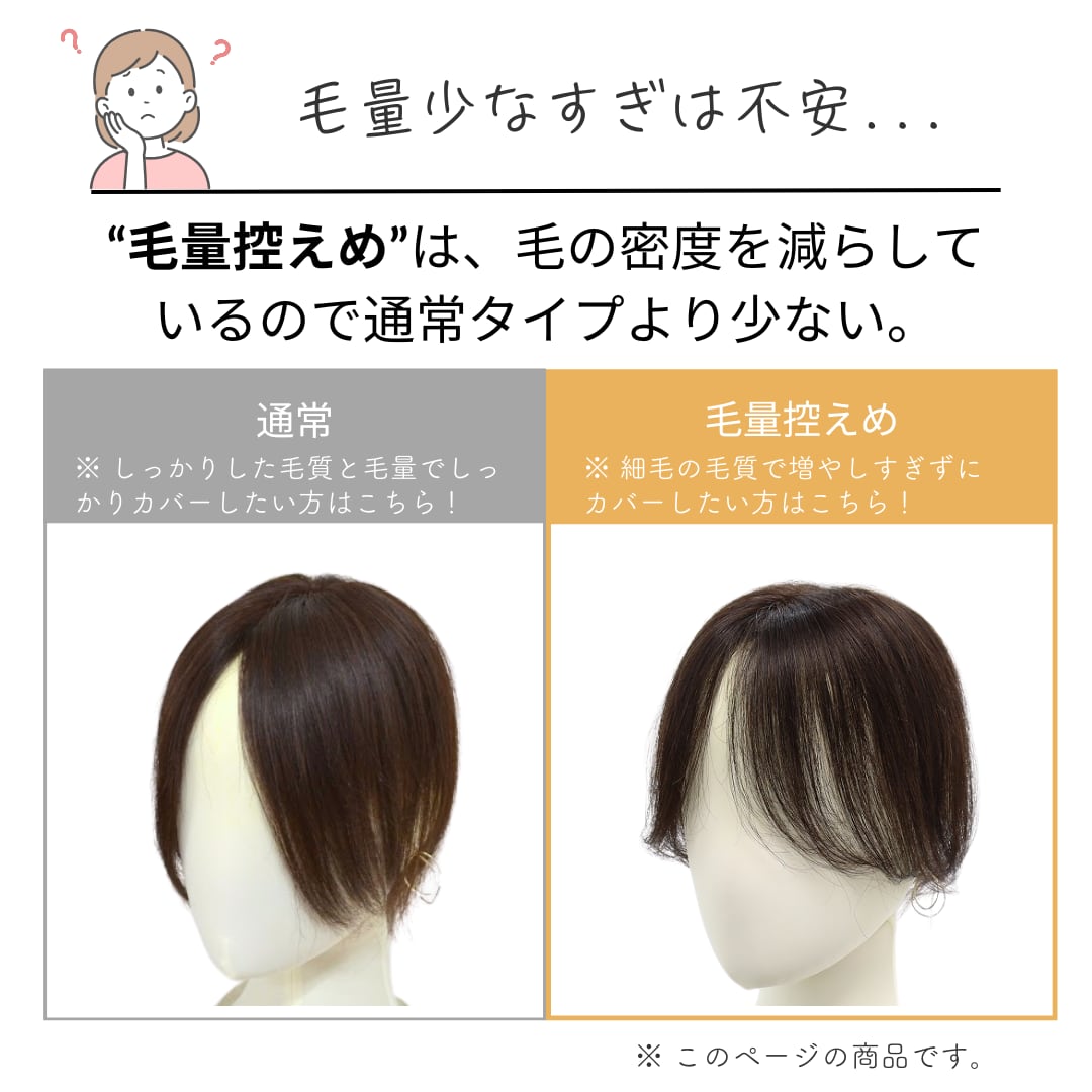 そんな大人女性のリアルなお声から生まれたのが、この【毛量控えめタイプ】の分け目カバーウィッグ(7×14cm)です。