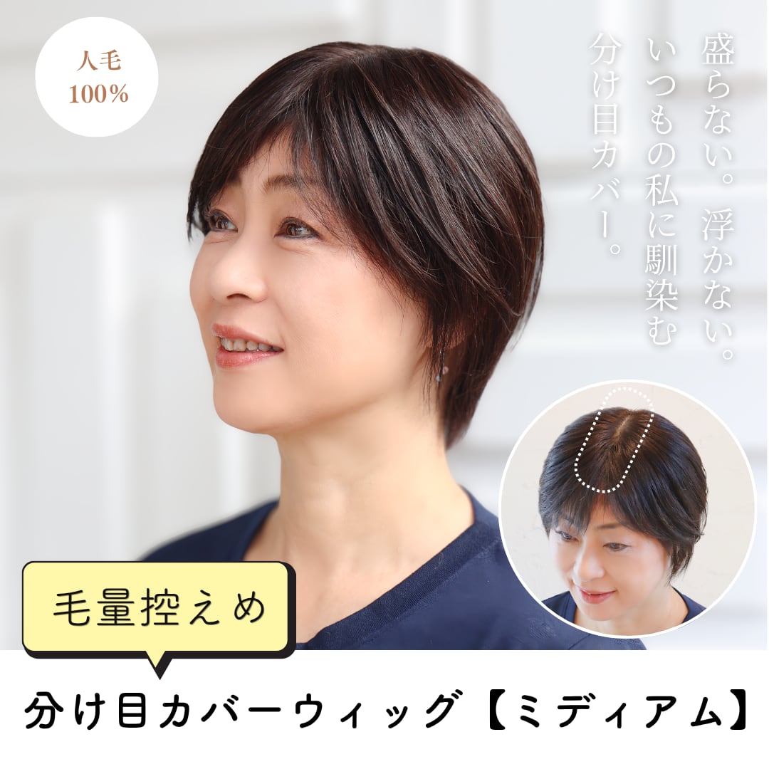 「伸びてきた白髪や分け目の透けを隠したいけれど、市販のウィッグは髪が多すぎてカツラっぽく浮いてしまう…」