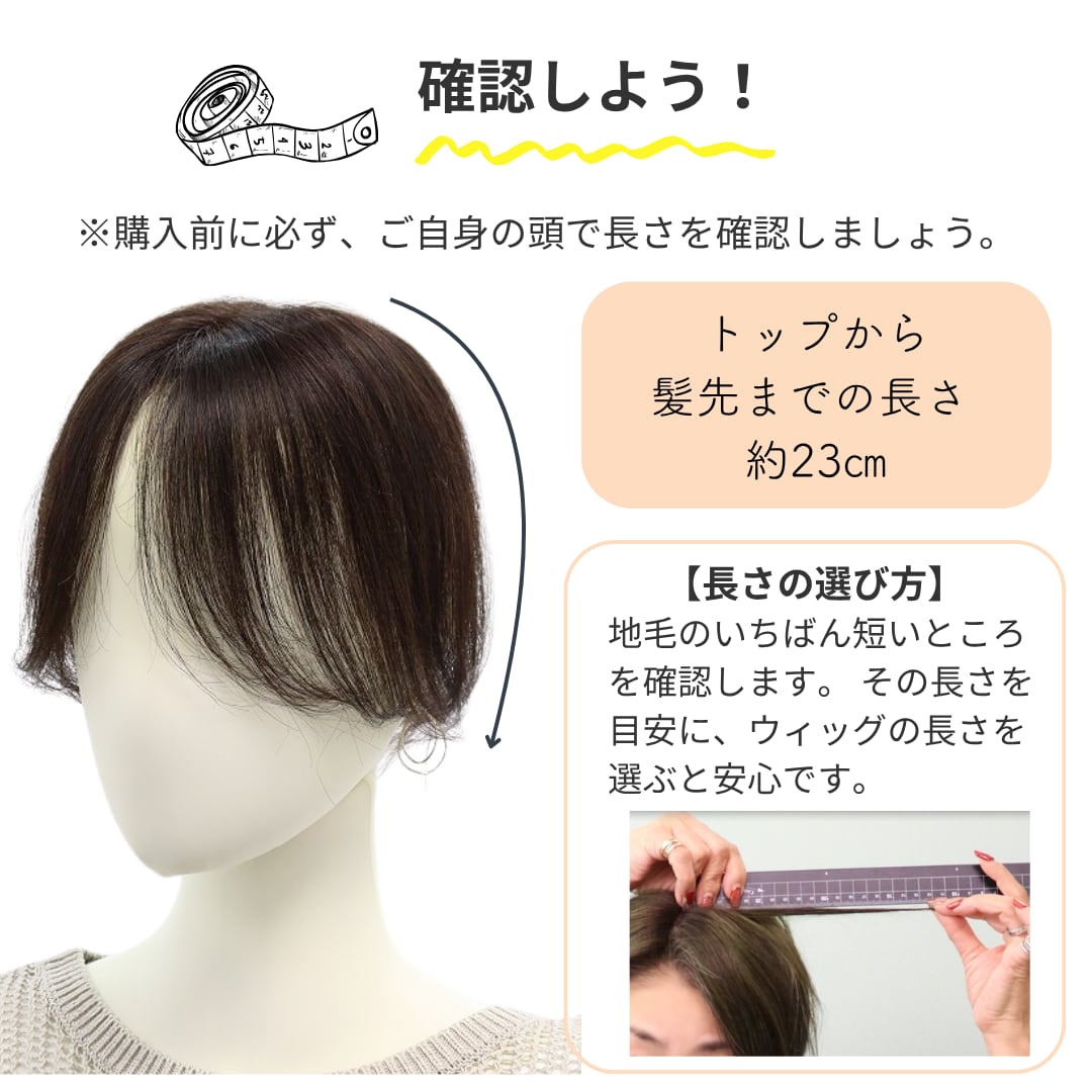 人毛100% 毛量控えめ 分け目カバーウィッグ ミディアムヘア用 (7×14cm) 盛らない自然なヘアピース 薄毛・白髪隠し 長方形タイプ