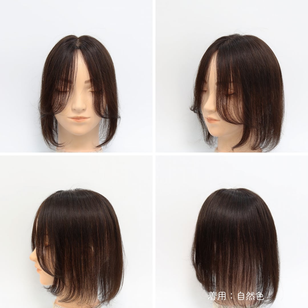 地毛の毛流れや段差に自然に繋がるよう、あらかじめ計算されたカットを施しています。毛量が控えめな分、自毛との境界線がより一層わかりにくく、ブラシでサッと整えるだけでスタイリングが完了します。