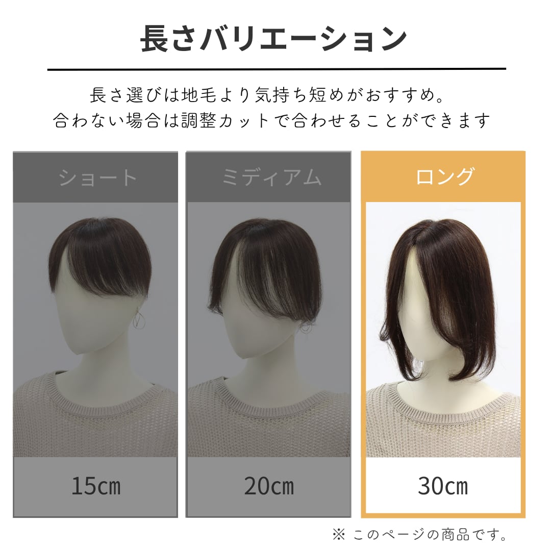そんな大人女性のリアルなお声から生まれたのが、この【毛量控えめタイプ】の分け目カバーウィッグ(7×14cm)です。