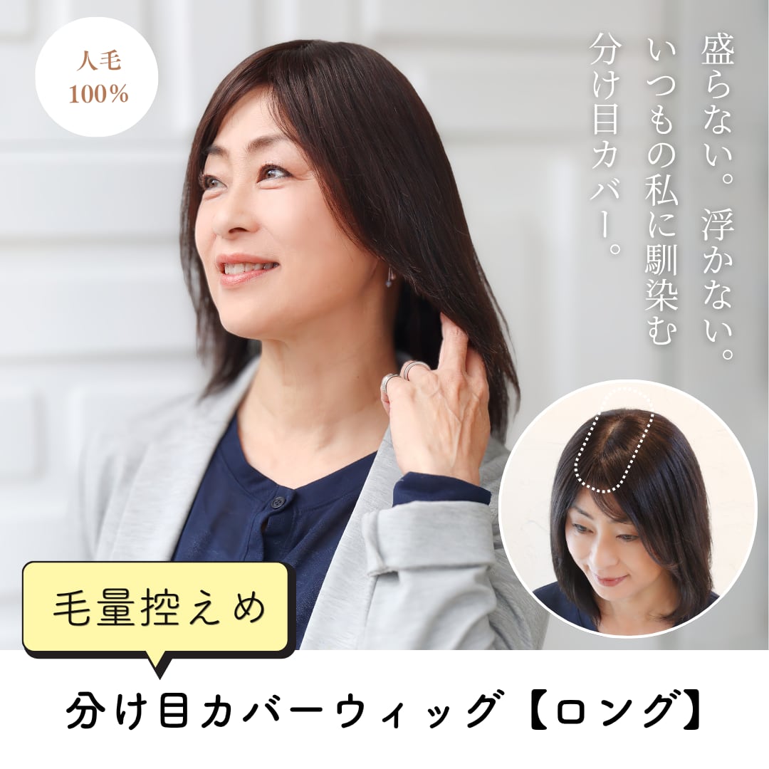 「伸びてきた白髪や分け目の透けを隠したいけれど、市販のウィッグは髪が多すぎてカツラっぽく浮いてしまう…」