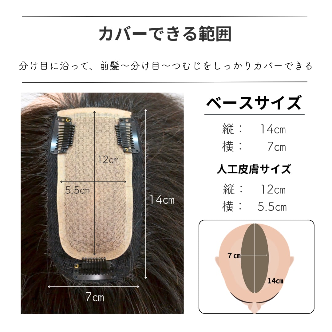 人毛100% 毛量控えめ 分け目カバーウィッグ ロングヘア用 (7×14cm) 盛らない自然なヘアピース 薄毛・白髪隠し 長方形タイプ